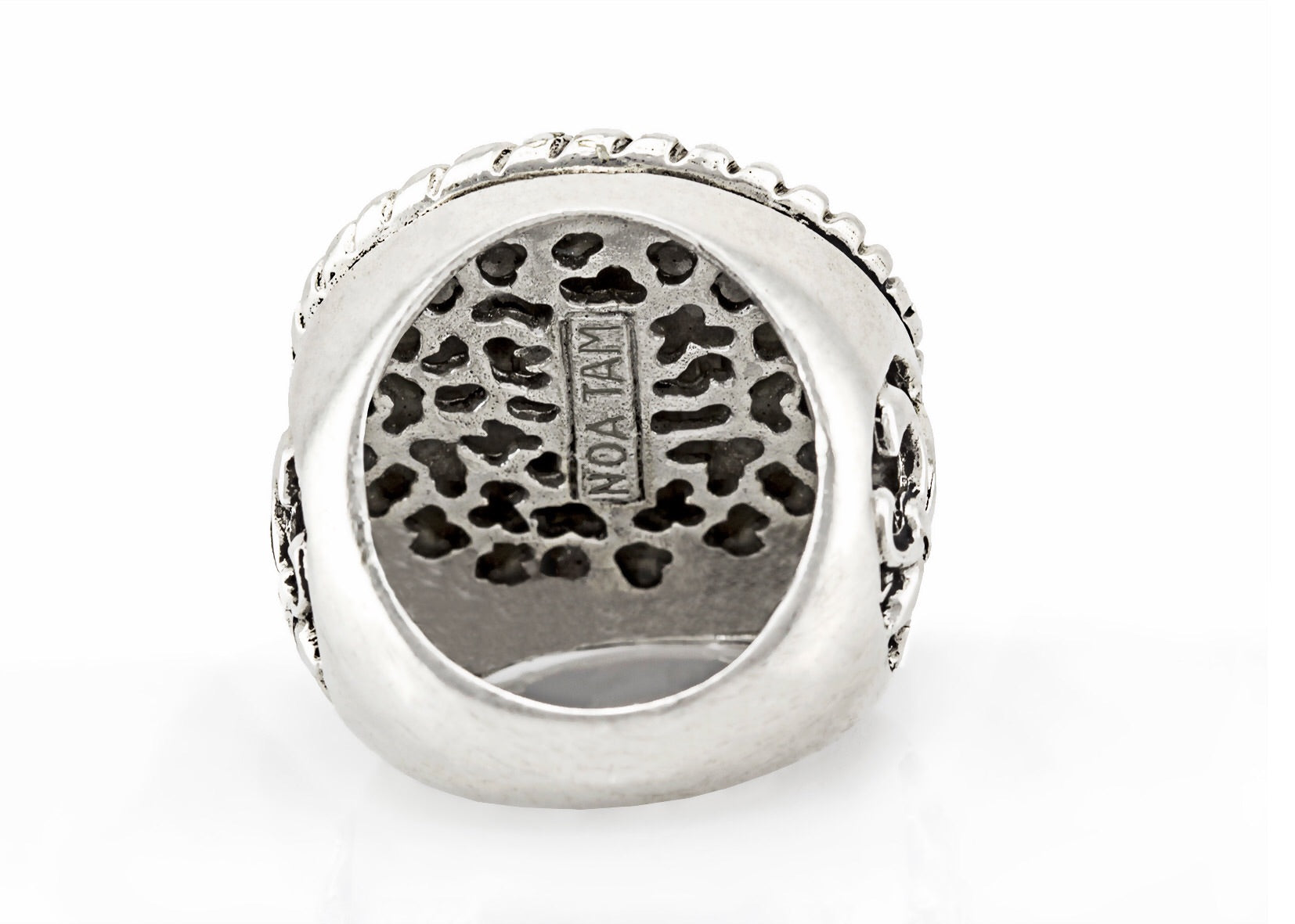 Ring with the Amen coin medallion in Hebrew on fleur de lis ring