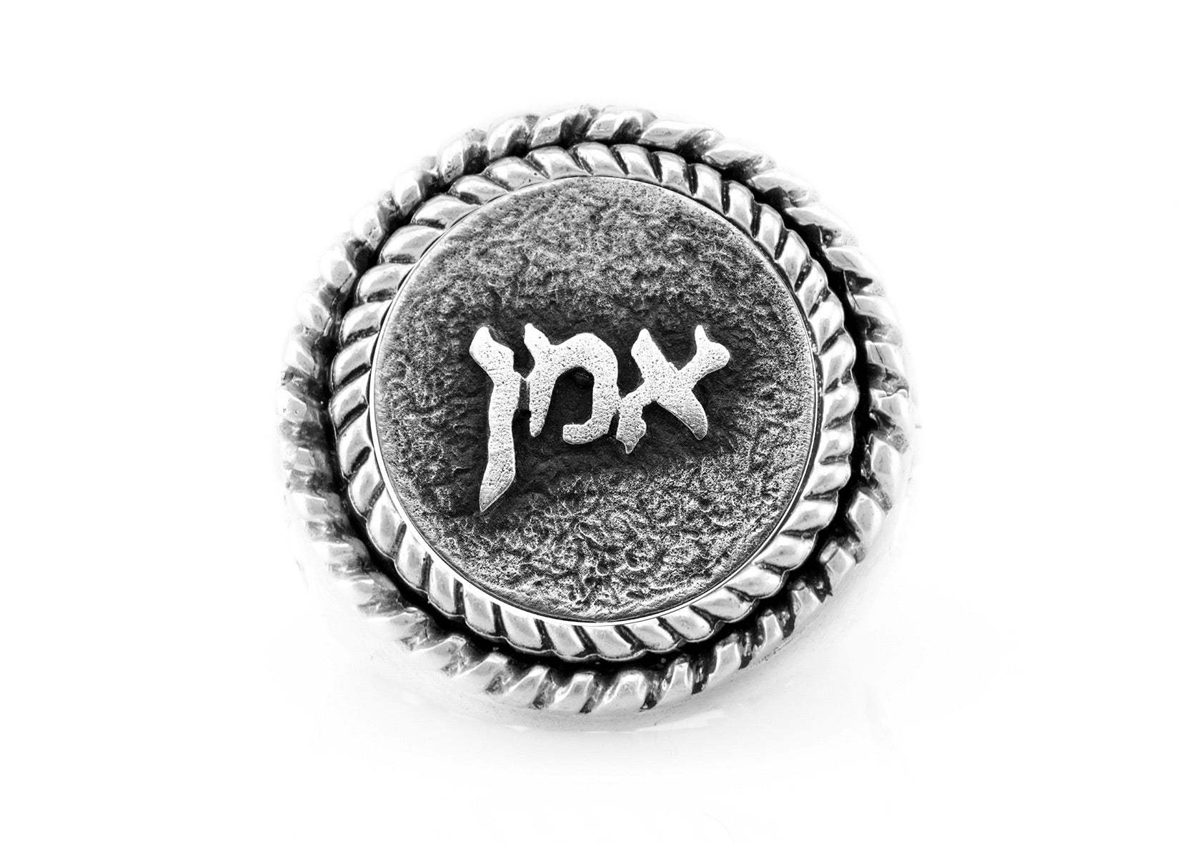 This design features the word “Amen” in Hebrew.