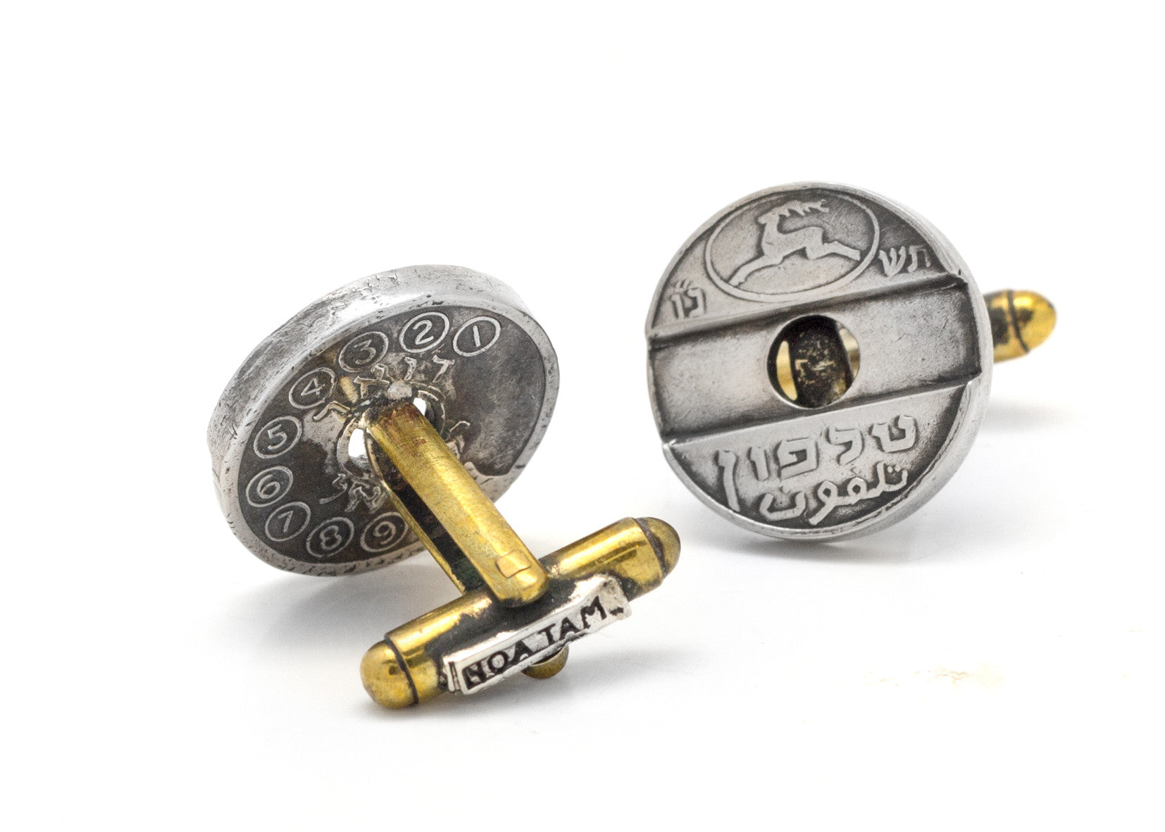 Asimon Telephone Token Cufflinks - Old Israeli Collector's Phone Token