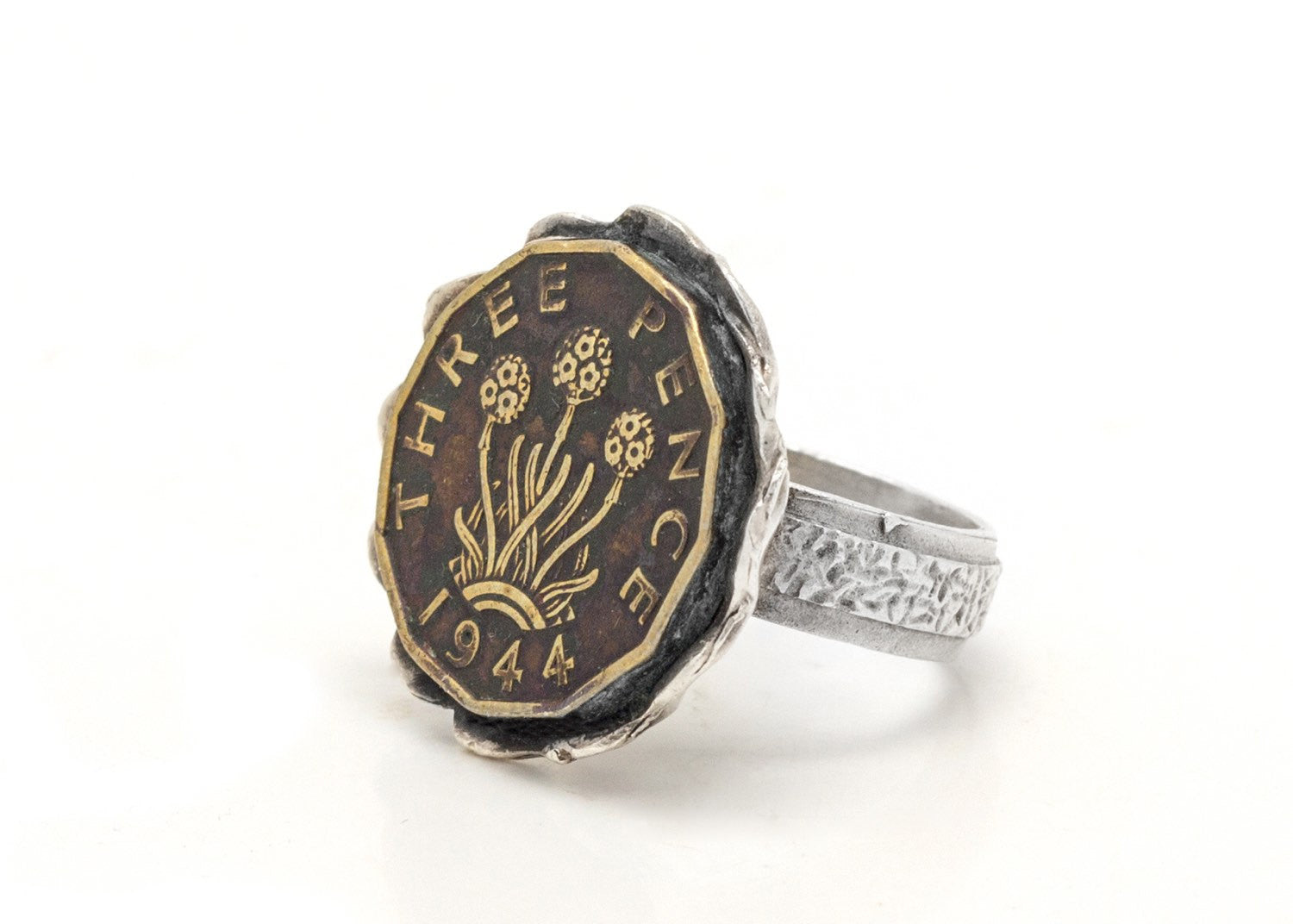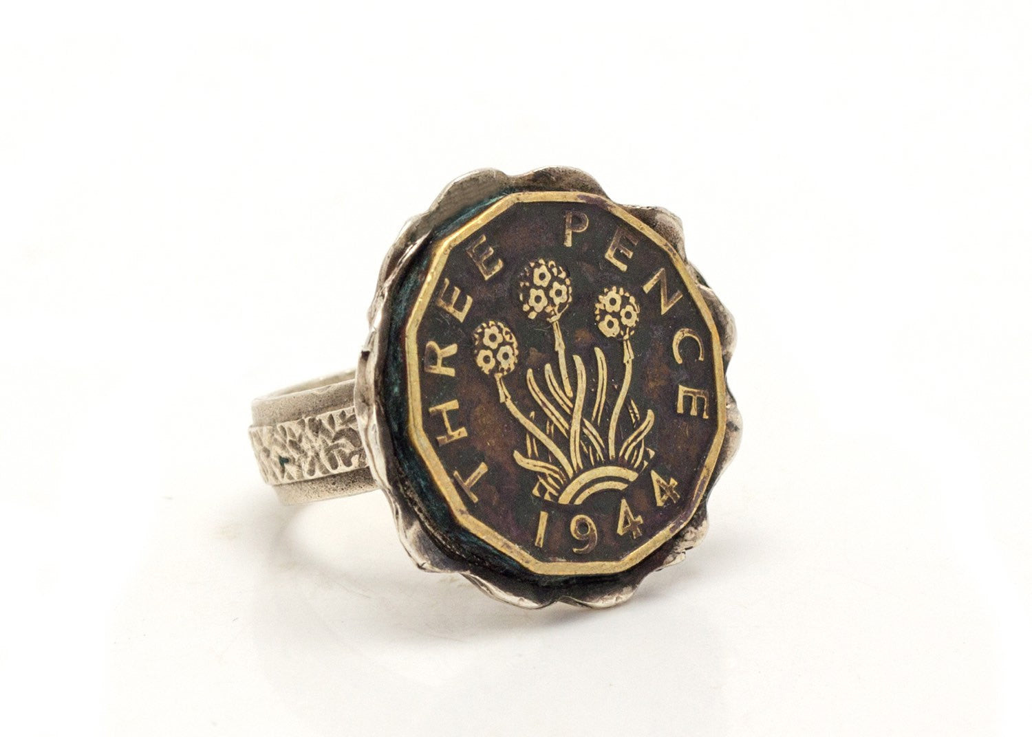 This amazing old coin ring feautres the 3 Pence coin of Great Britain