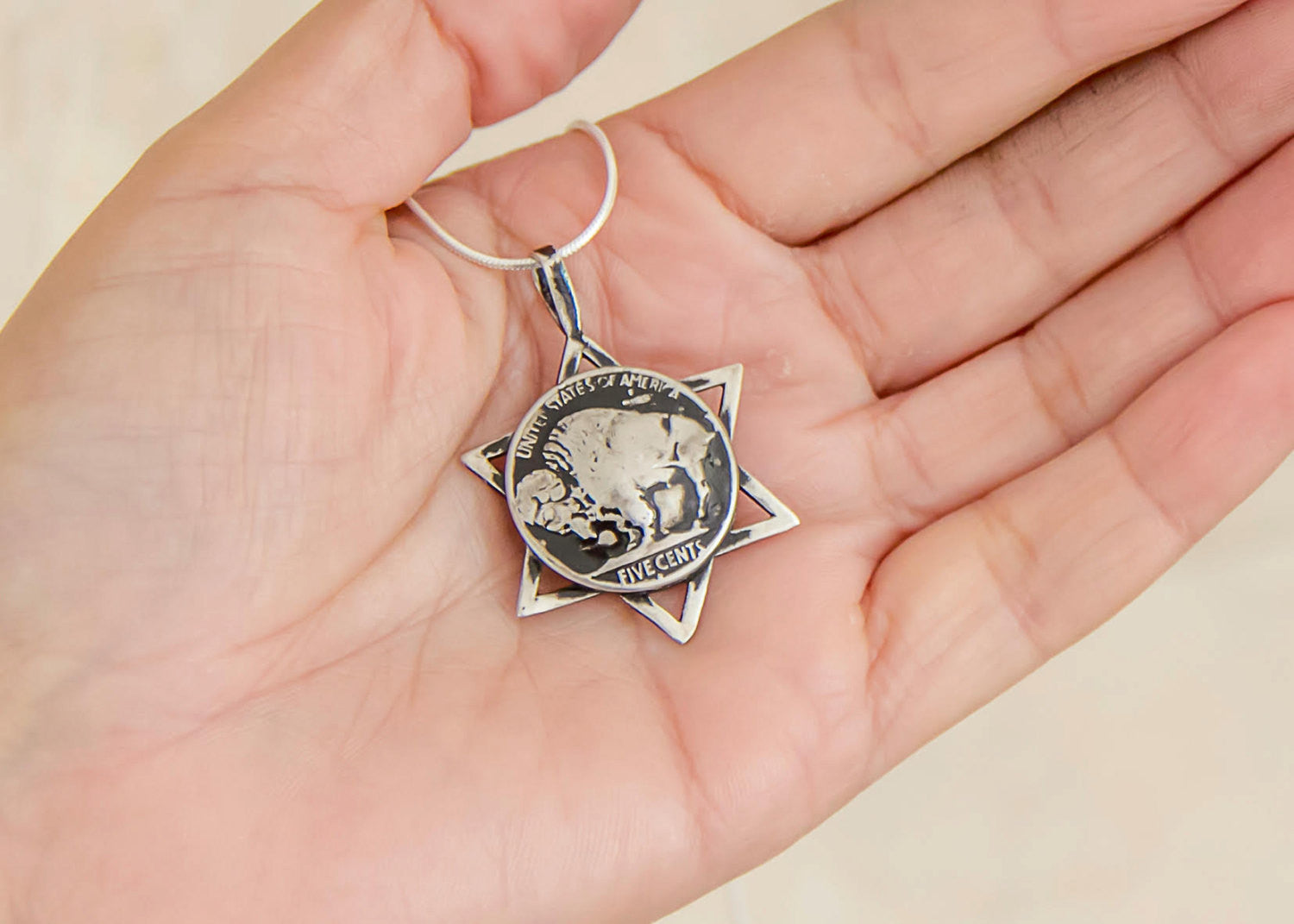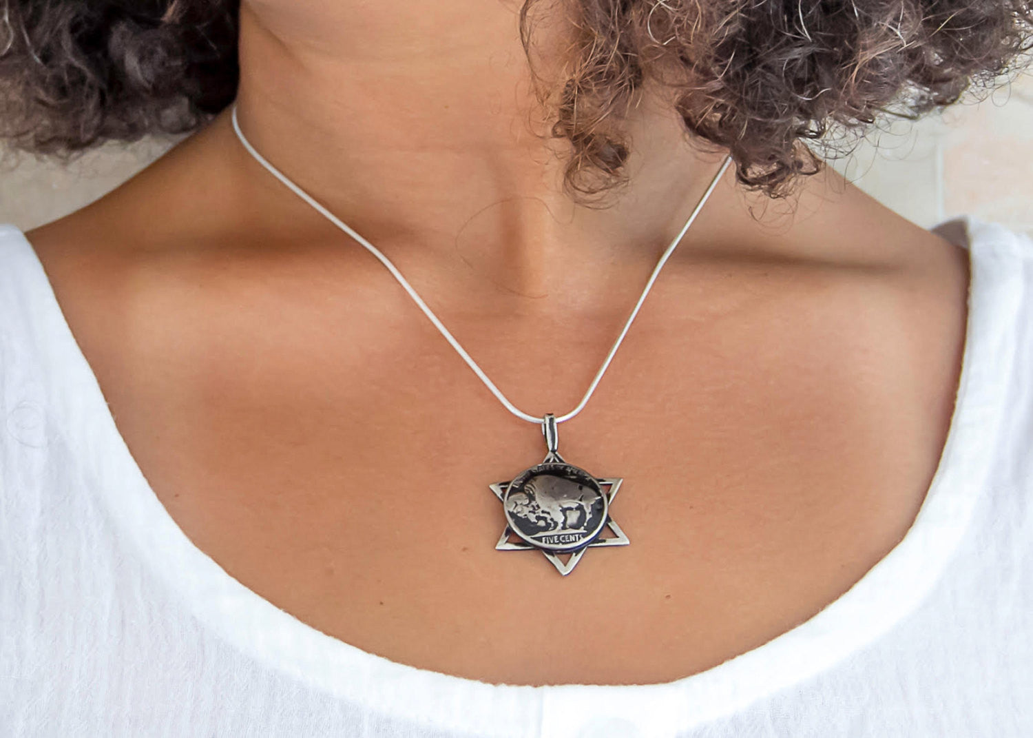 Buffalo Nickel Old Coin of USA Coin with Magen David Pendant Necklace