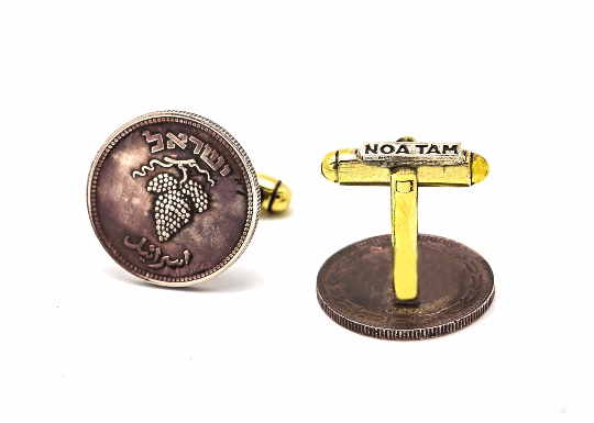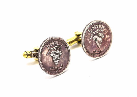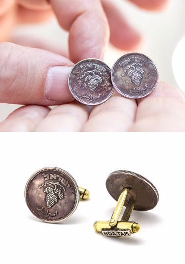 An amazing coin cufflink with the 25 Pruta coin of Israel