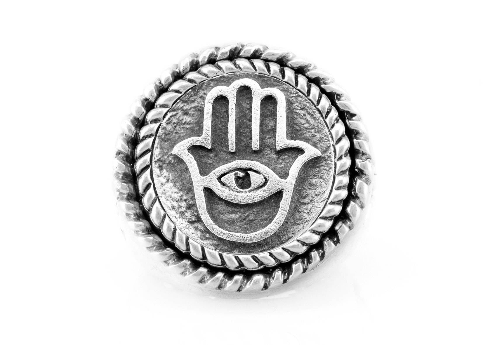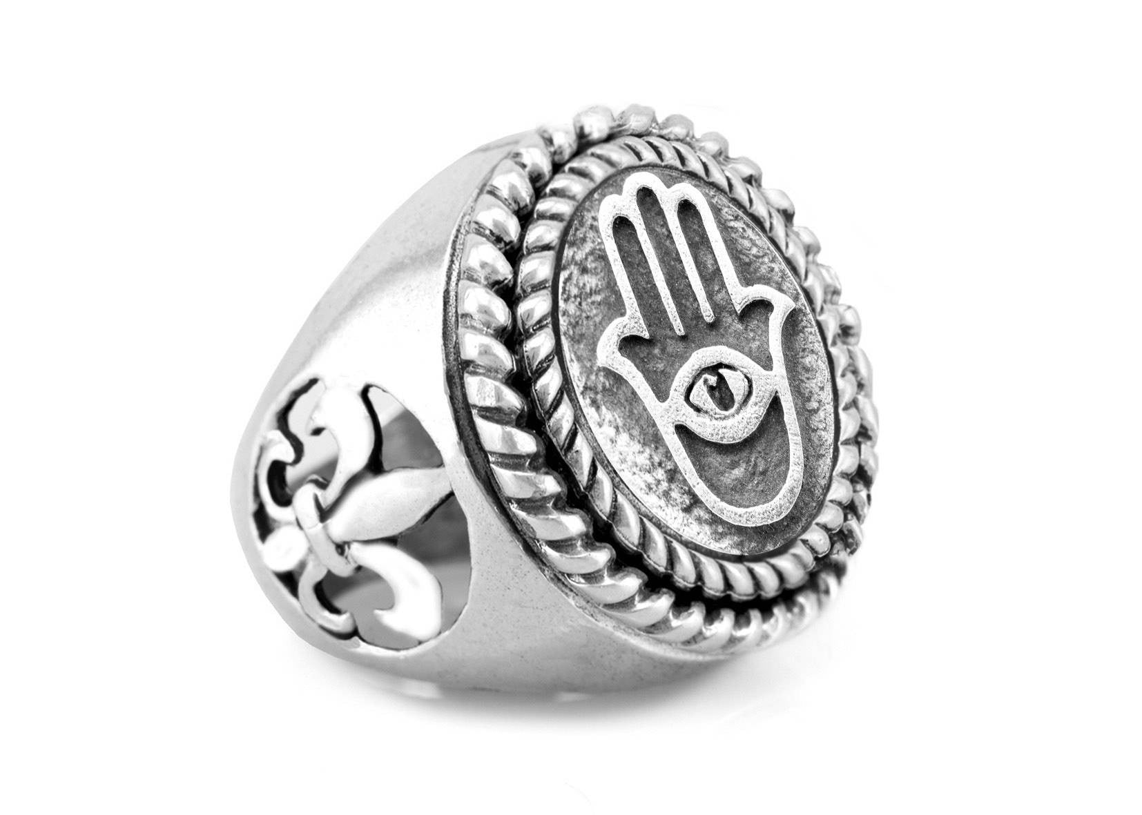 Hamsa Ring with fleur de lis symbol on the side: Hamsa jewelry