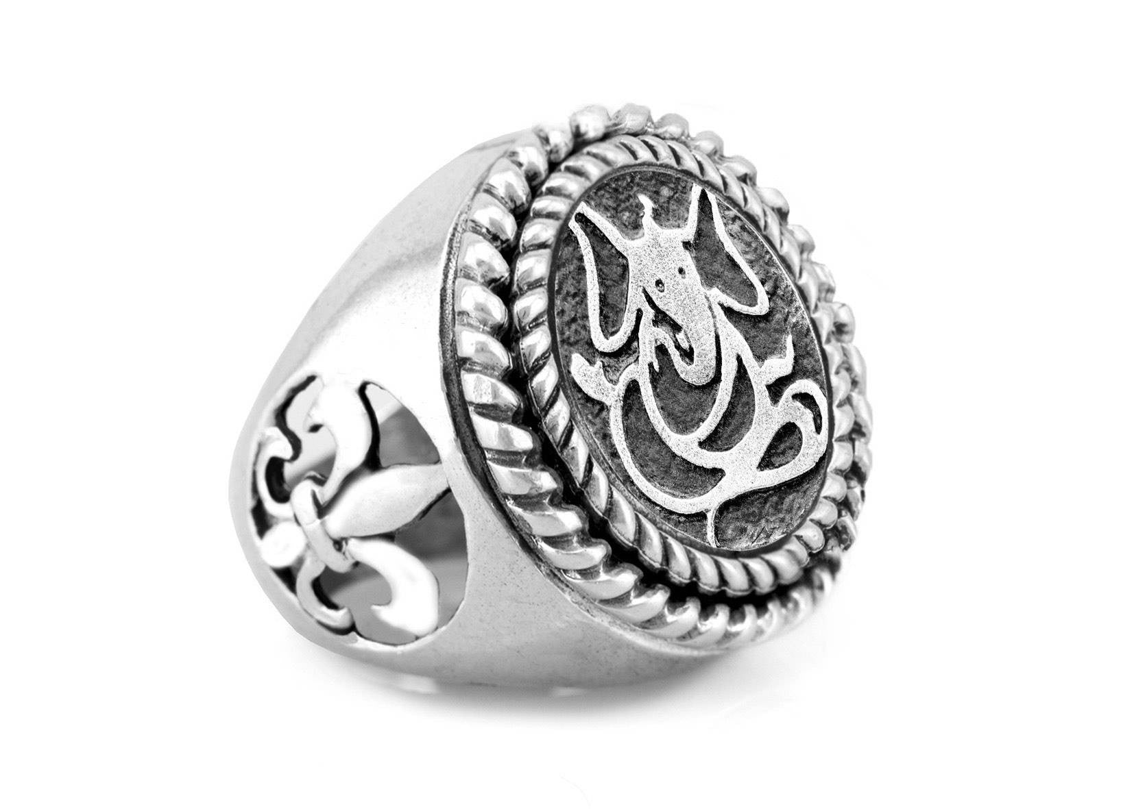 Ganesha Ring with a fleur de lis symbol - Indian elephant god ring