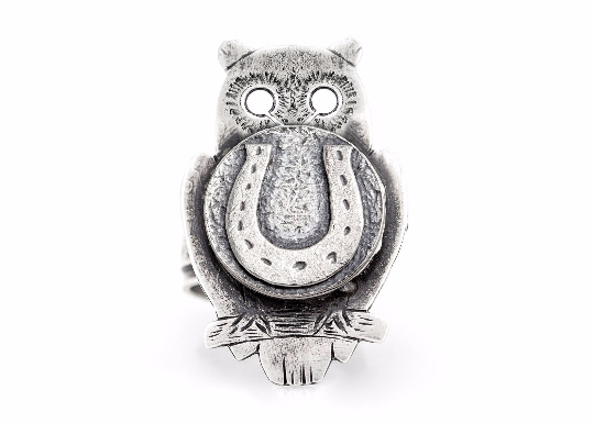 An amazing coin ring with the Horseshoe coin medallion on owl