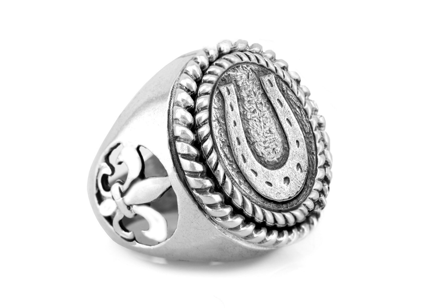 Horseshoe Ring, Silver Coin Ring, Fleur De Lis Ring, Horse Lovers Gift, Boho Silver Ring, Chunky Ring, Silver Signet Ring, Coin Jewelry