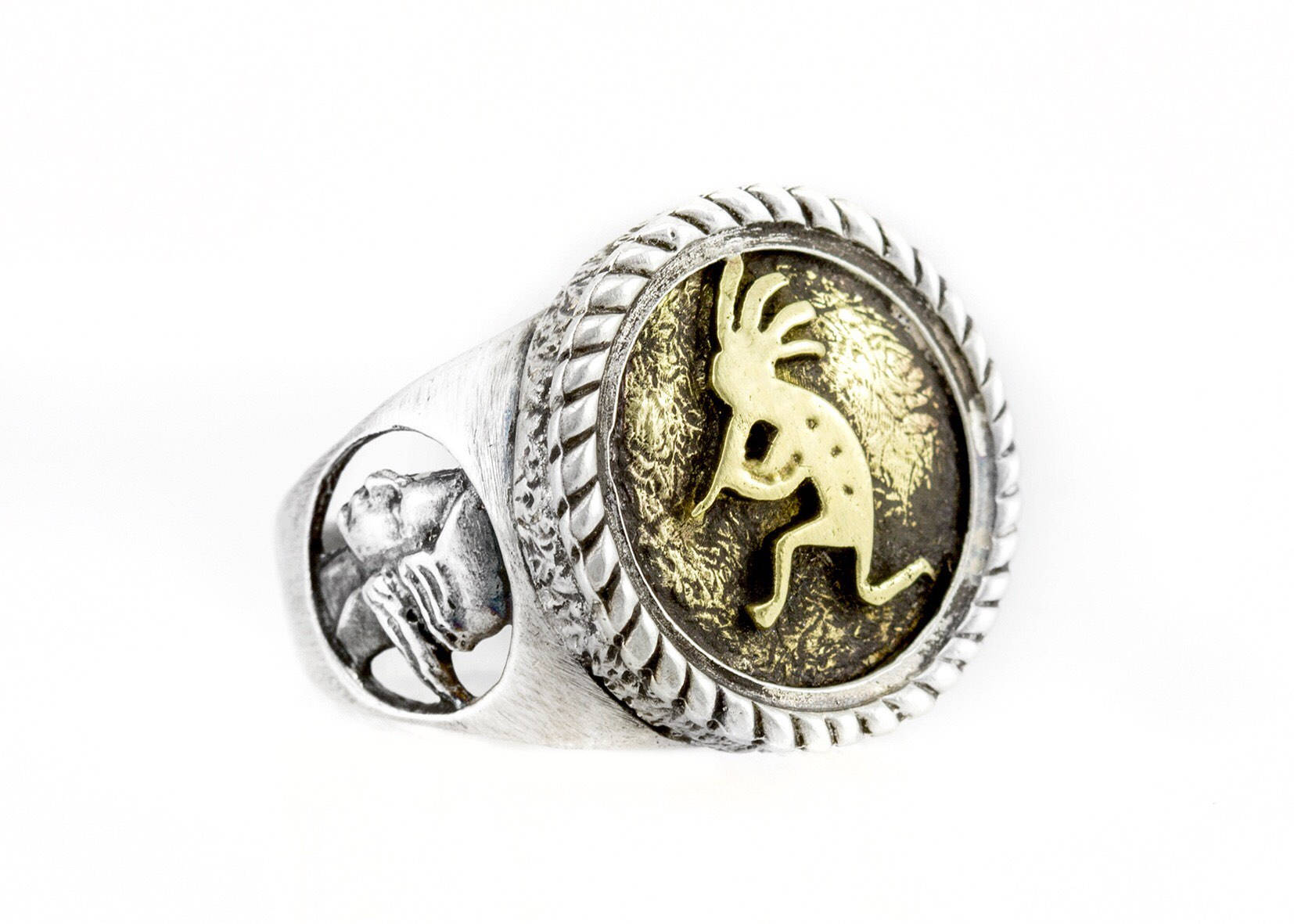 Coin ring with the Kokopelli coin medallion native Americans god for fertility