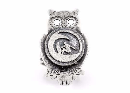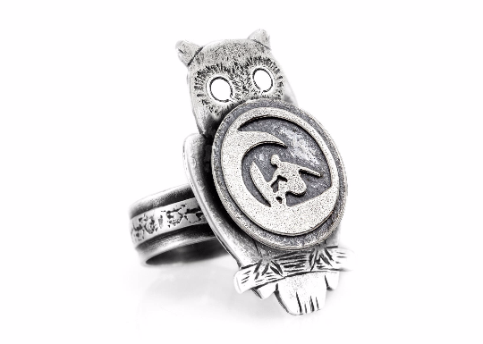 Coin ring with the Surfer coin medallion on owl surfer ring