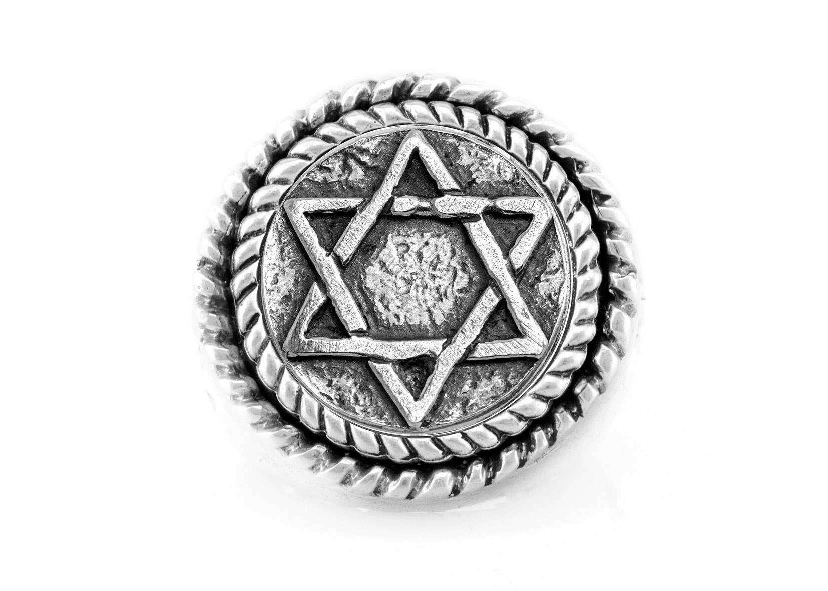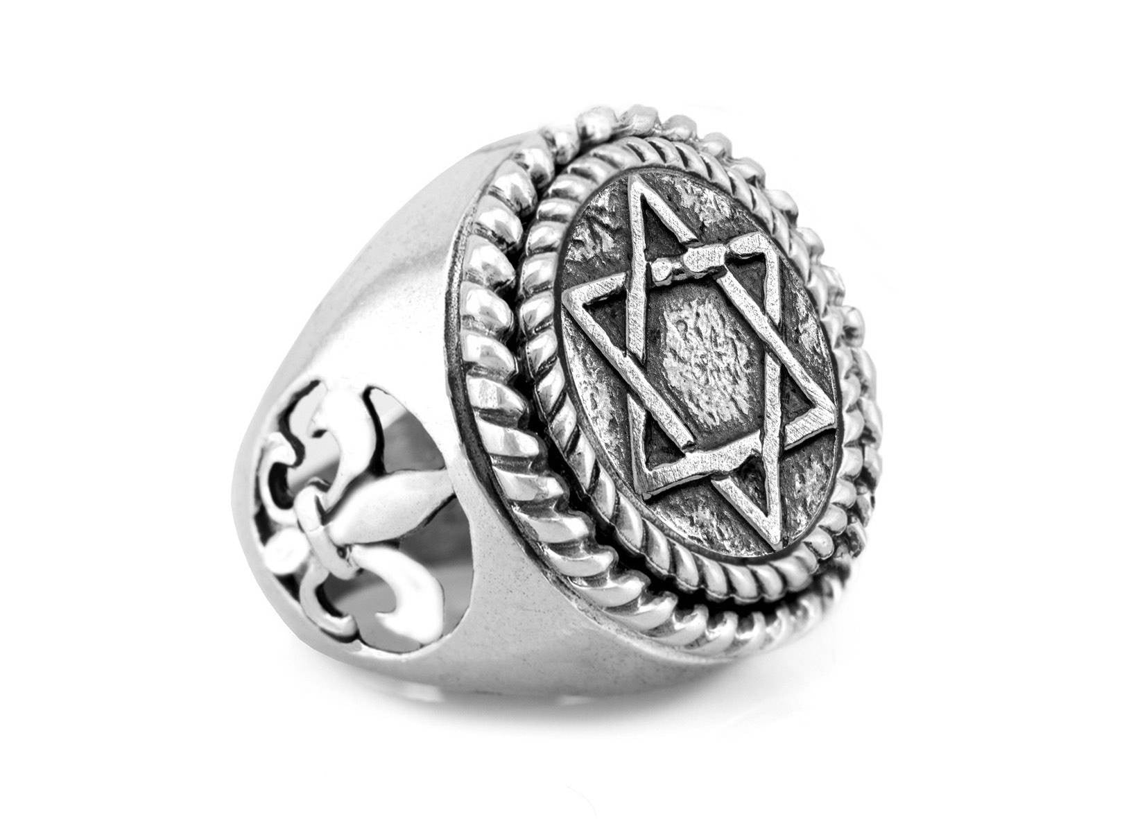 Star of David Coin Medallion Ring with fleur de lis symbol/ Magen David Ring
