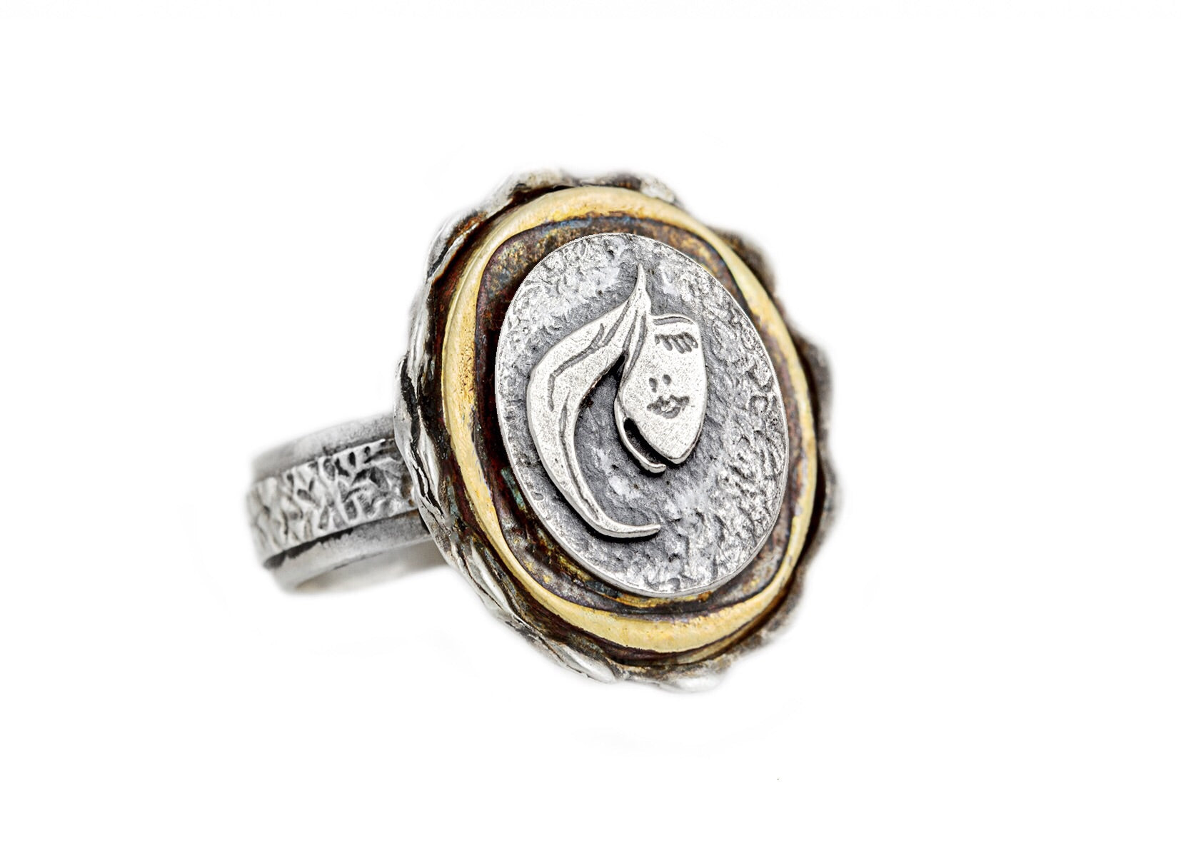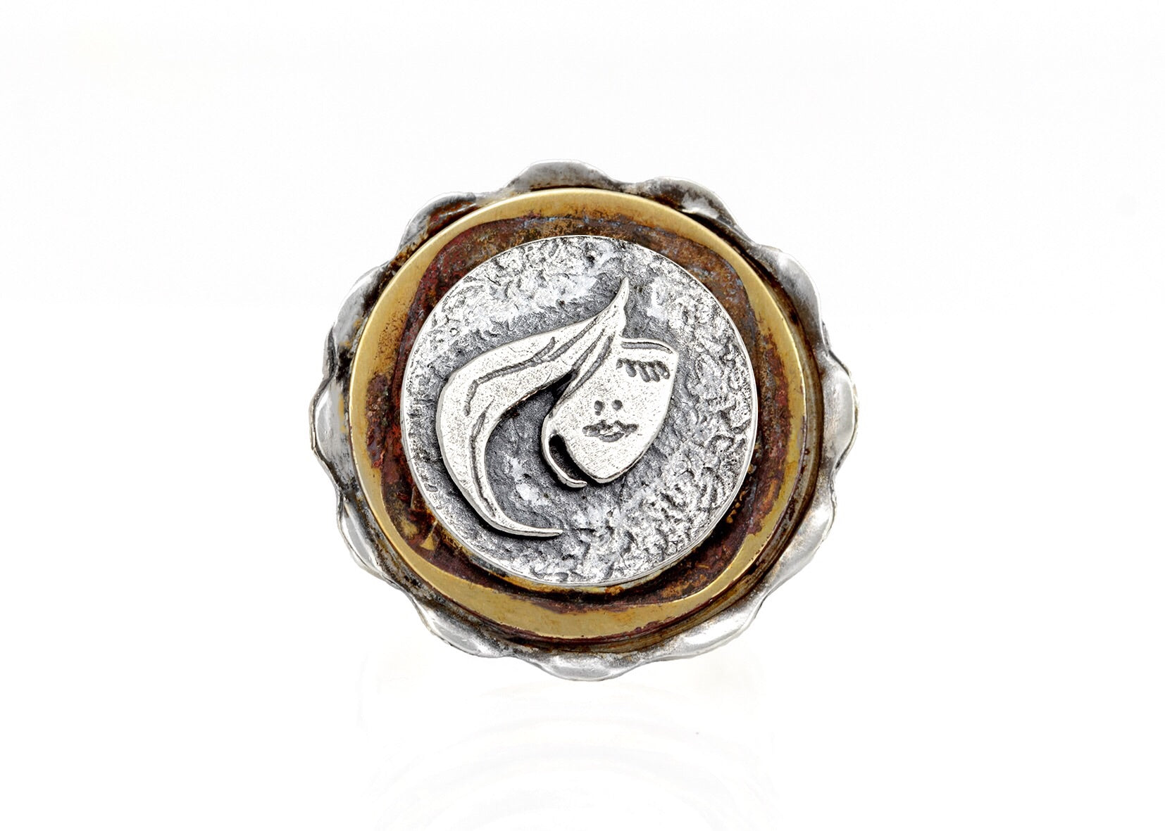 An amazing coin ring with the Stylish Face coin medallion and 10 Agorot coin of Israel