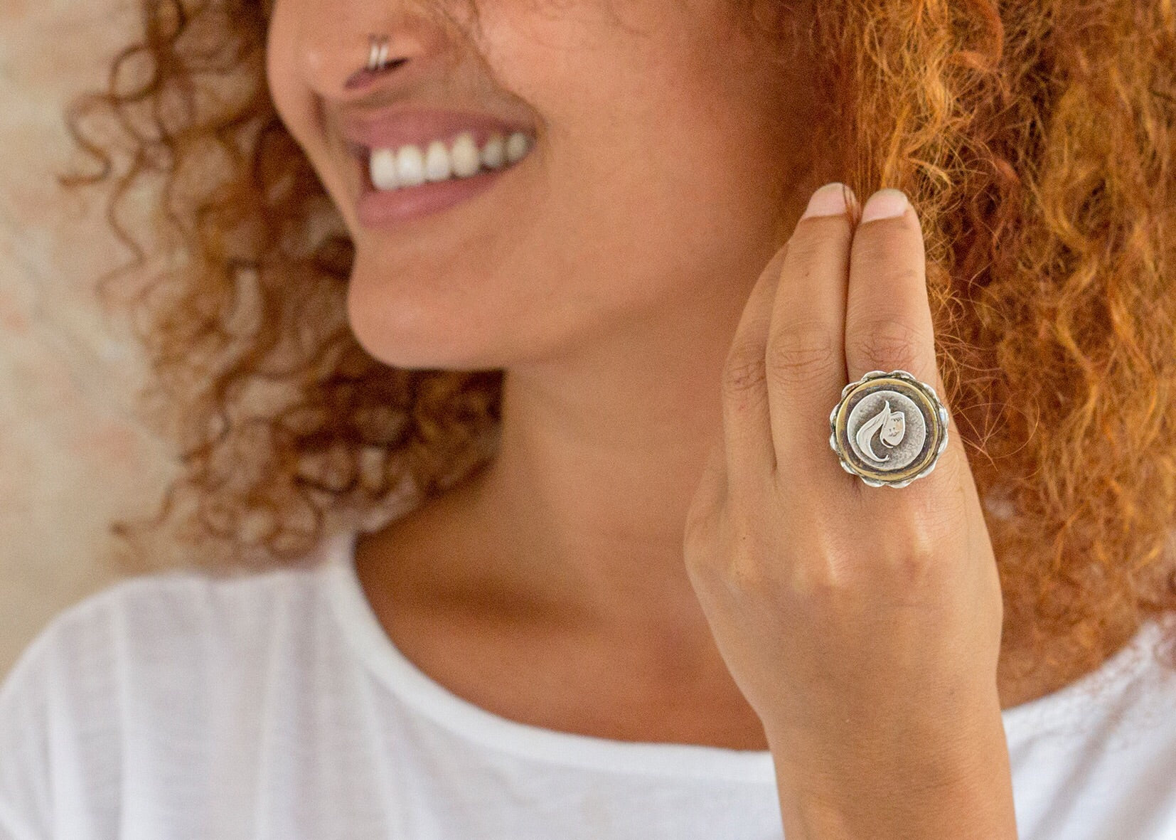 coin ring with the Stylish Face coin medallion and 10 Agorot coin of Israel