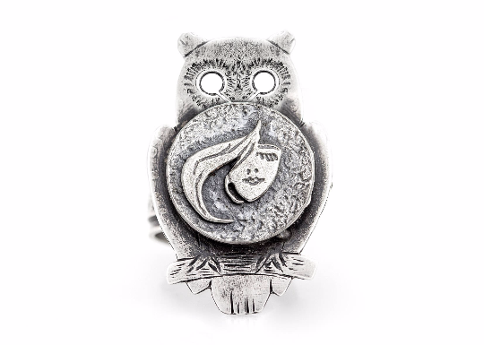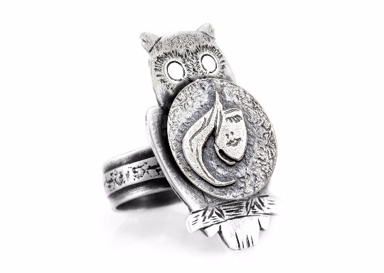 Coin ring with the Stylish Face coin medallion on owl Noa Tam coin jewelry owl jewelry