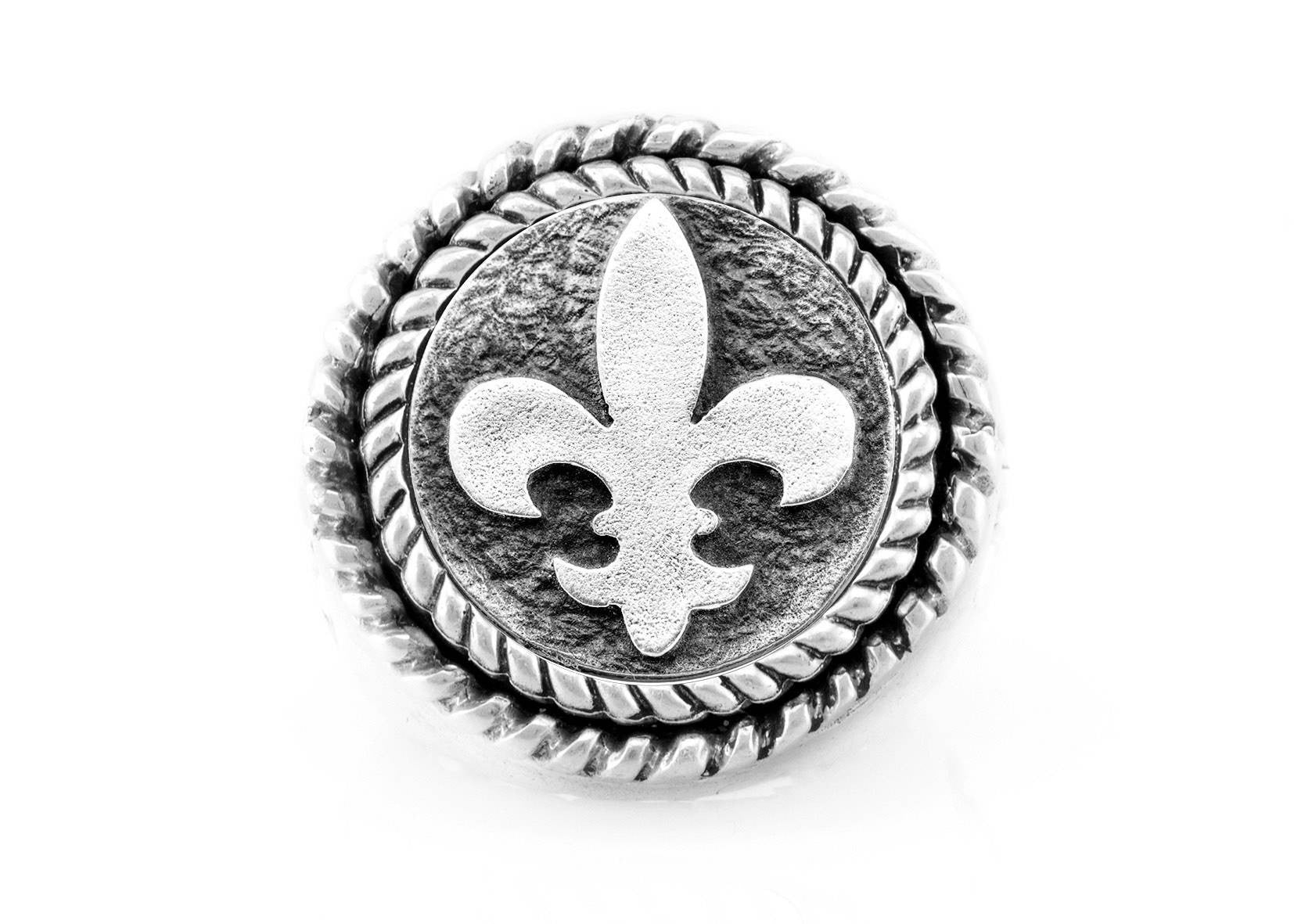 An amazing coin ring with the White Lily medallion on fleur de lis ring