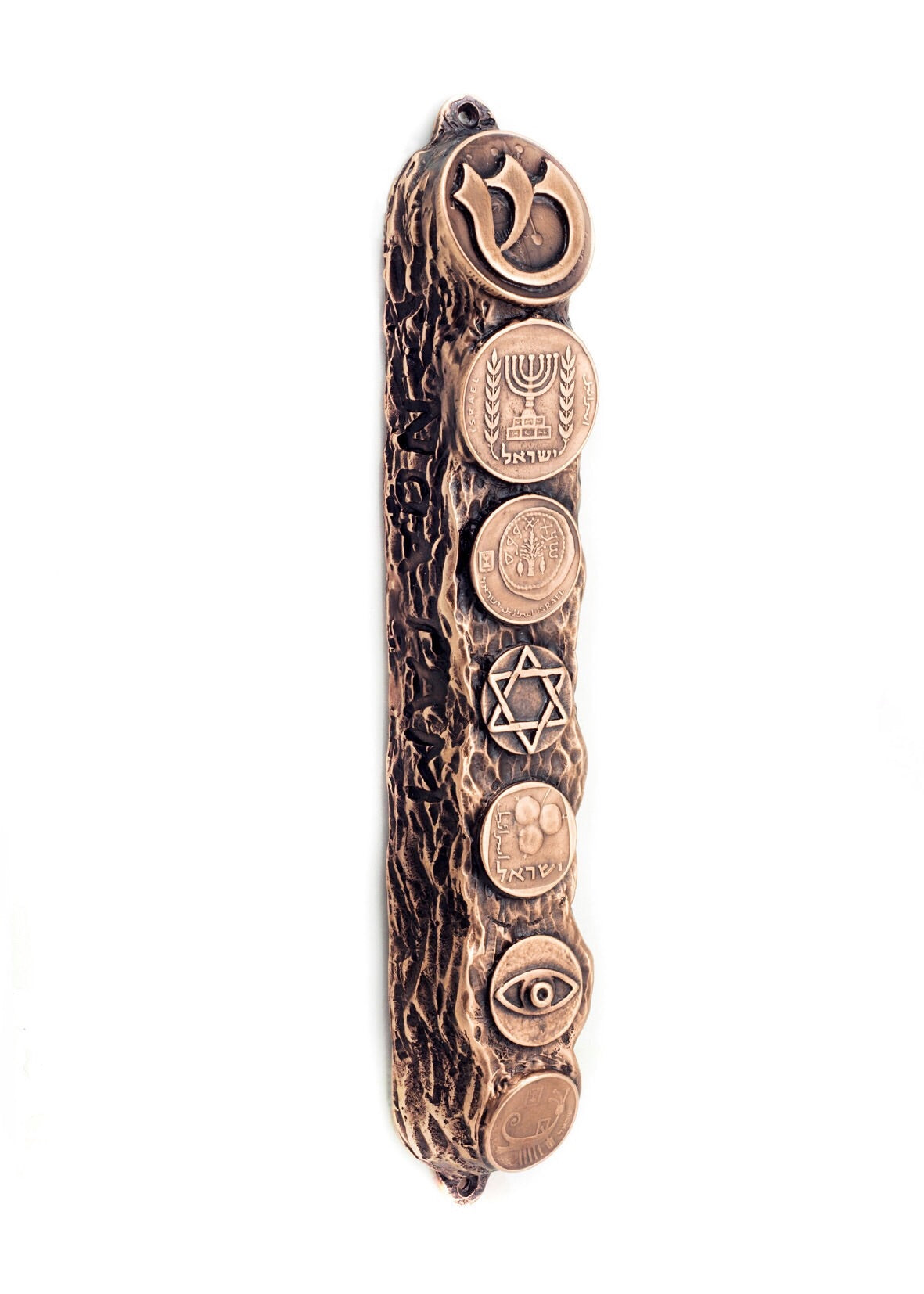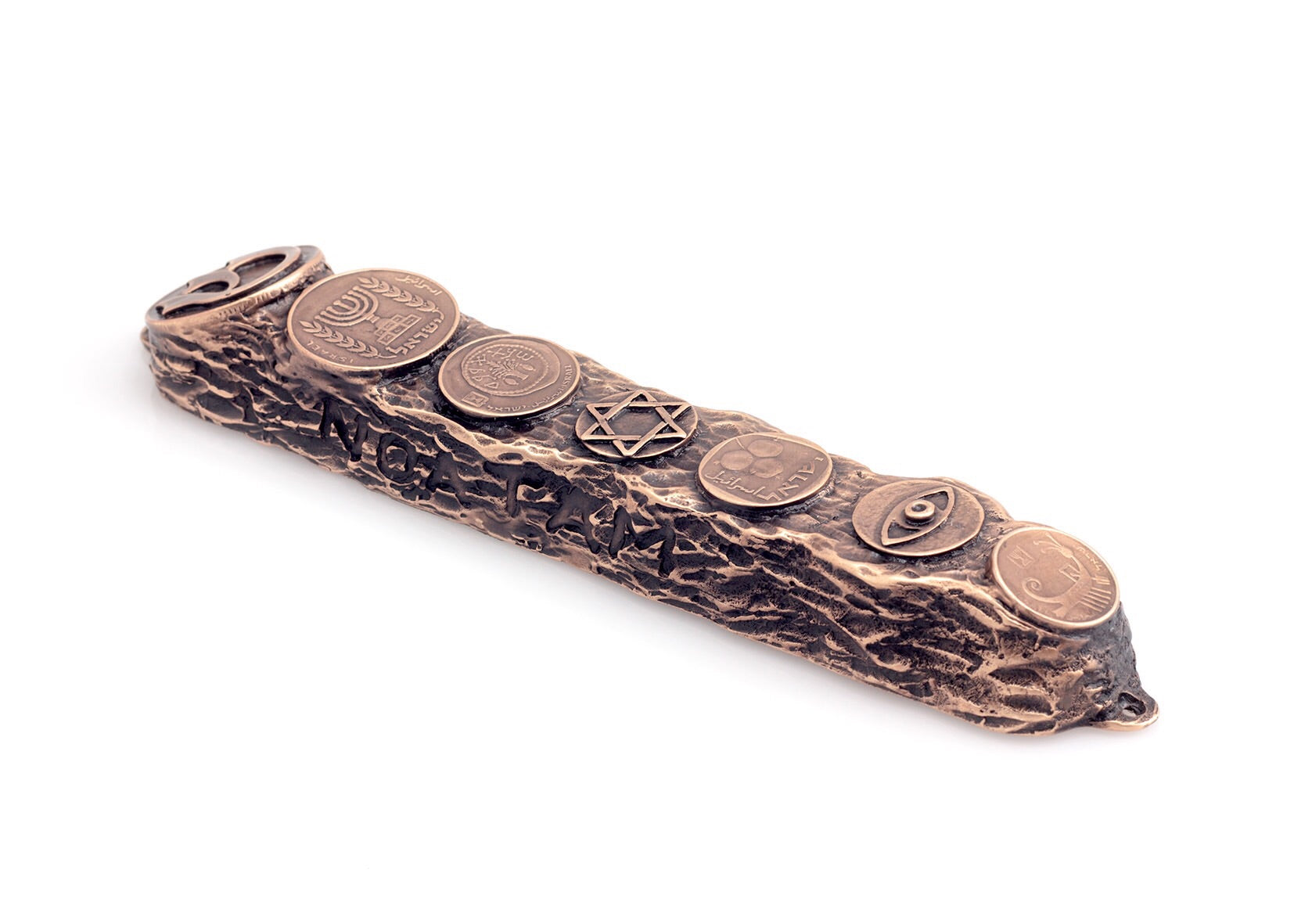 Copper Mezuzah with Israeli Collector's Coins & Blessings - Big (16cm)