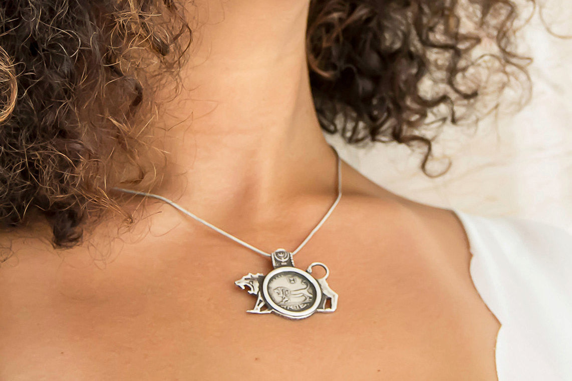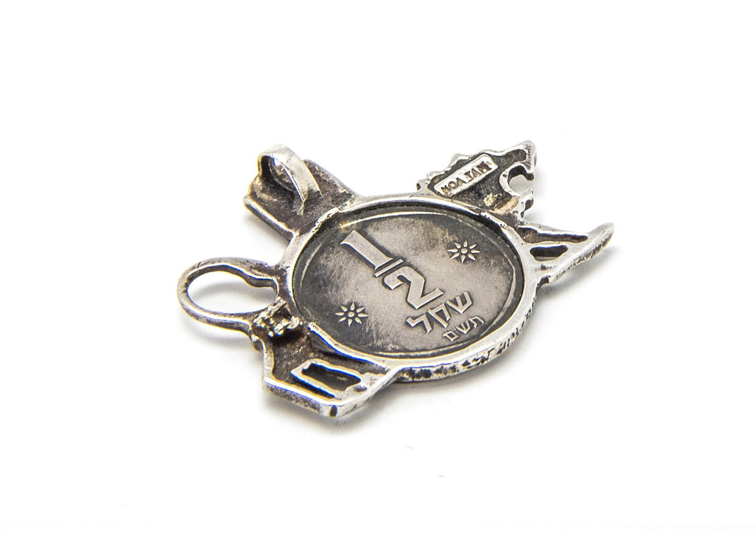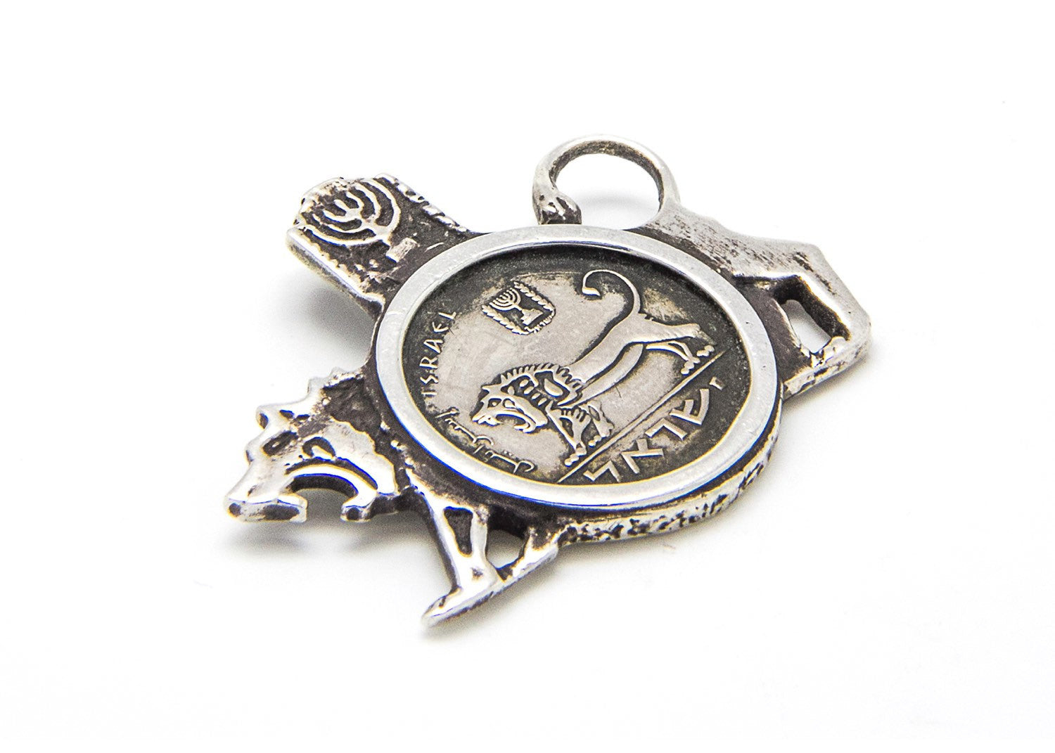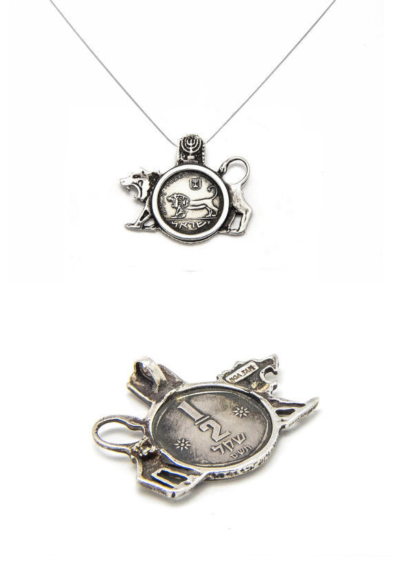 Courage Israeli Old Coin - Handmade Lion Silver Pendant Necklace