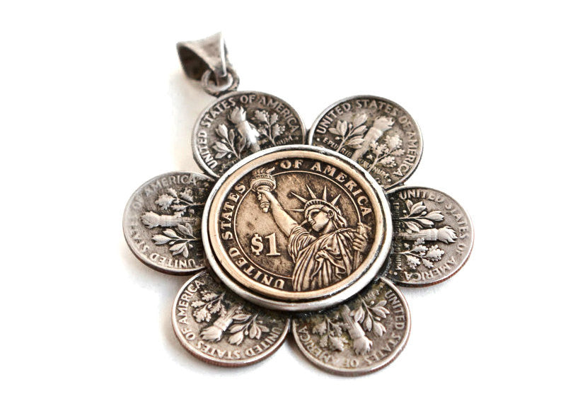 Flower USA Coins Liberty Necklace - US Dimes and Dollar Coin