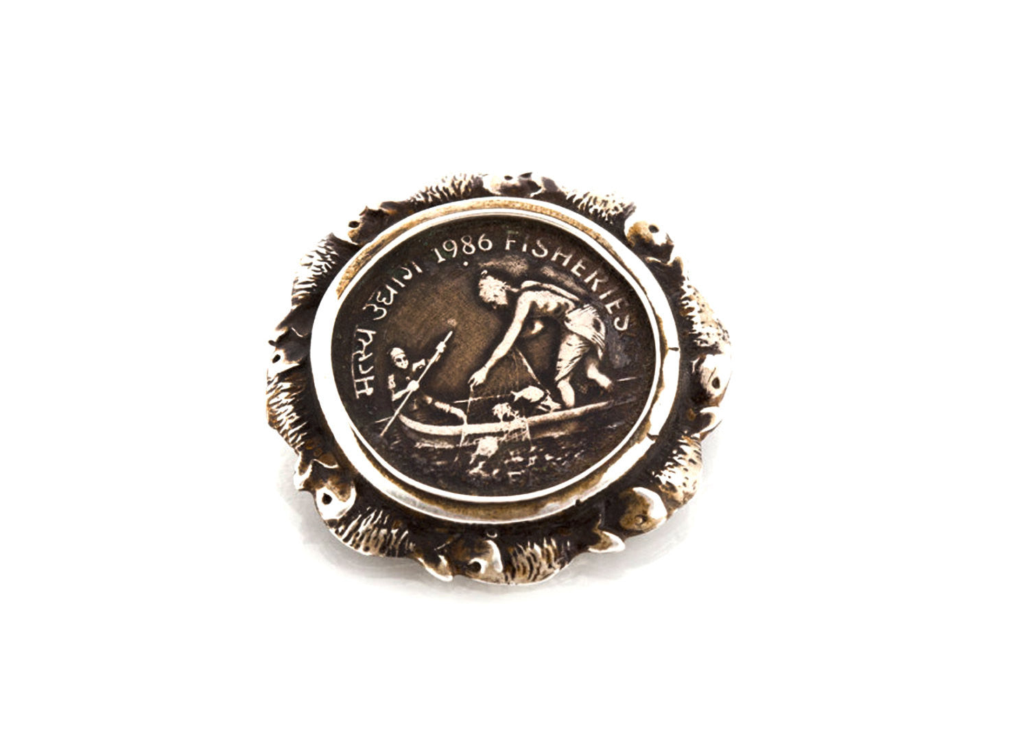 Cooperation Indian 50 Paise Coin Fishing Pendant Necklace
