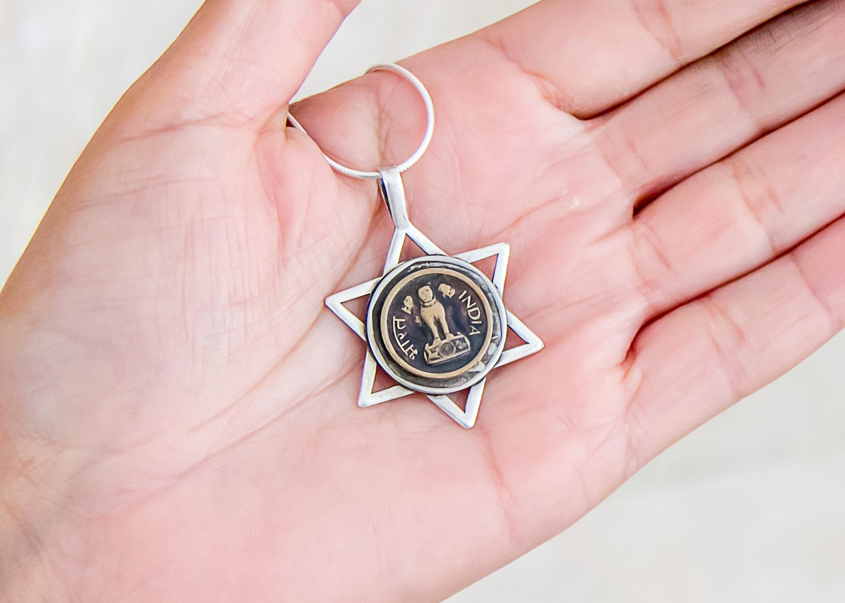 Indian Coin & Israeli Coin in a Star of David Pendant Necklace