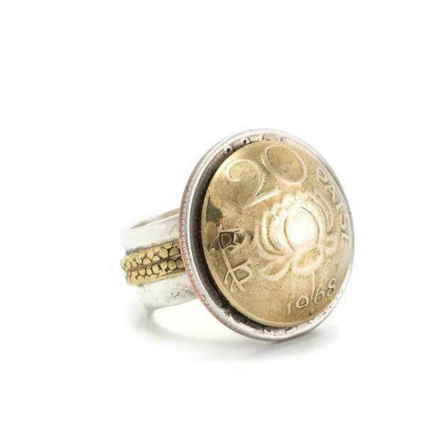 Indian Coin Ring - Purity Lotus 20 Paise Coin of India
