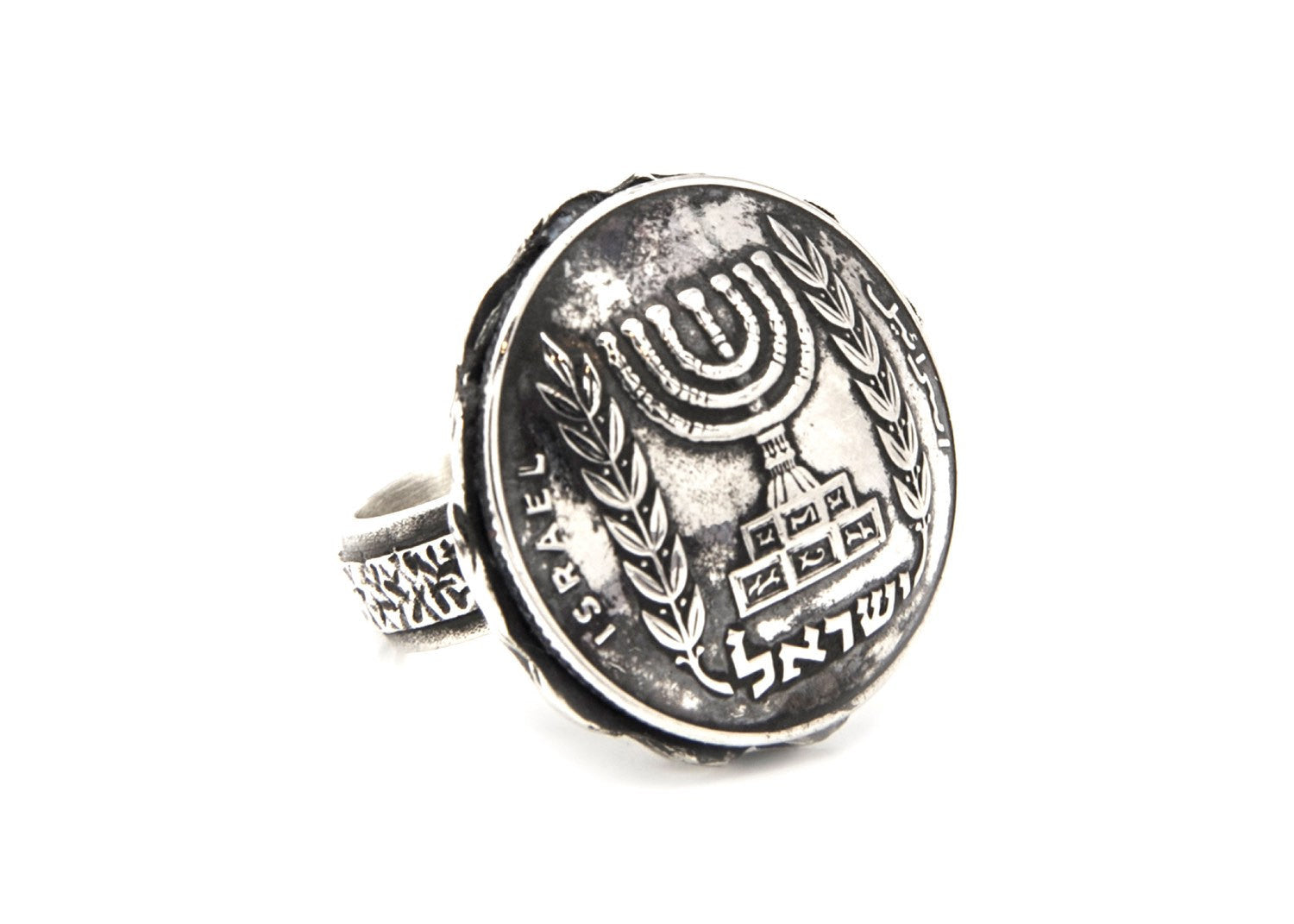 Israeli ring, Lira Coin, Israeli Silver Ring, Jewish Menorah, Hebrew Coin, Coins Ring, Old Coin Ring, 925 Silver Chunky Ring