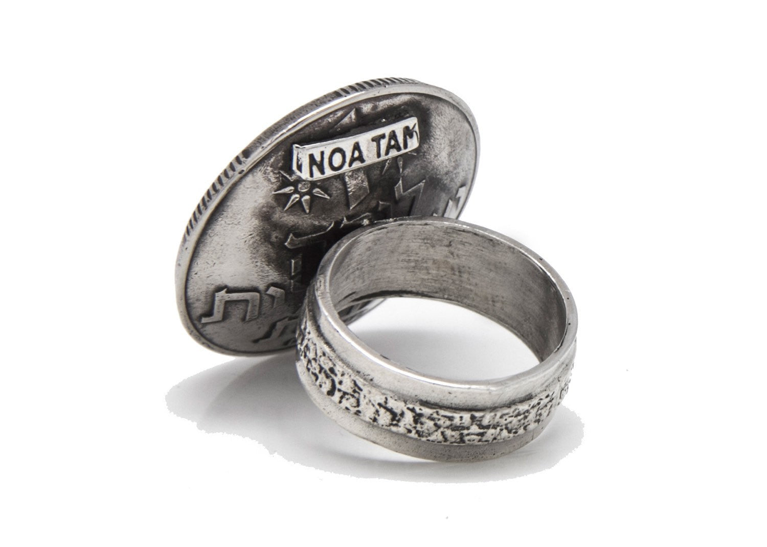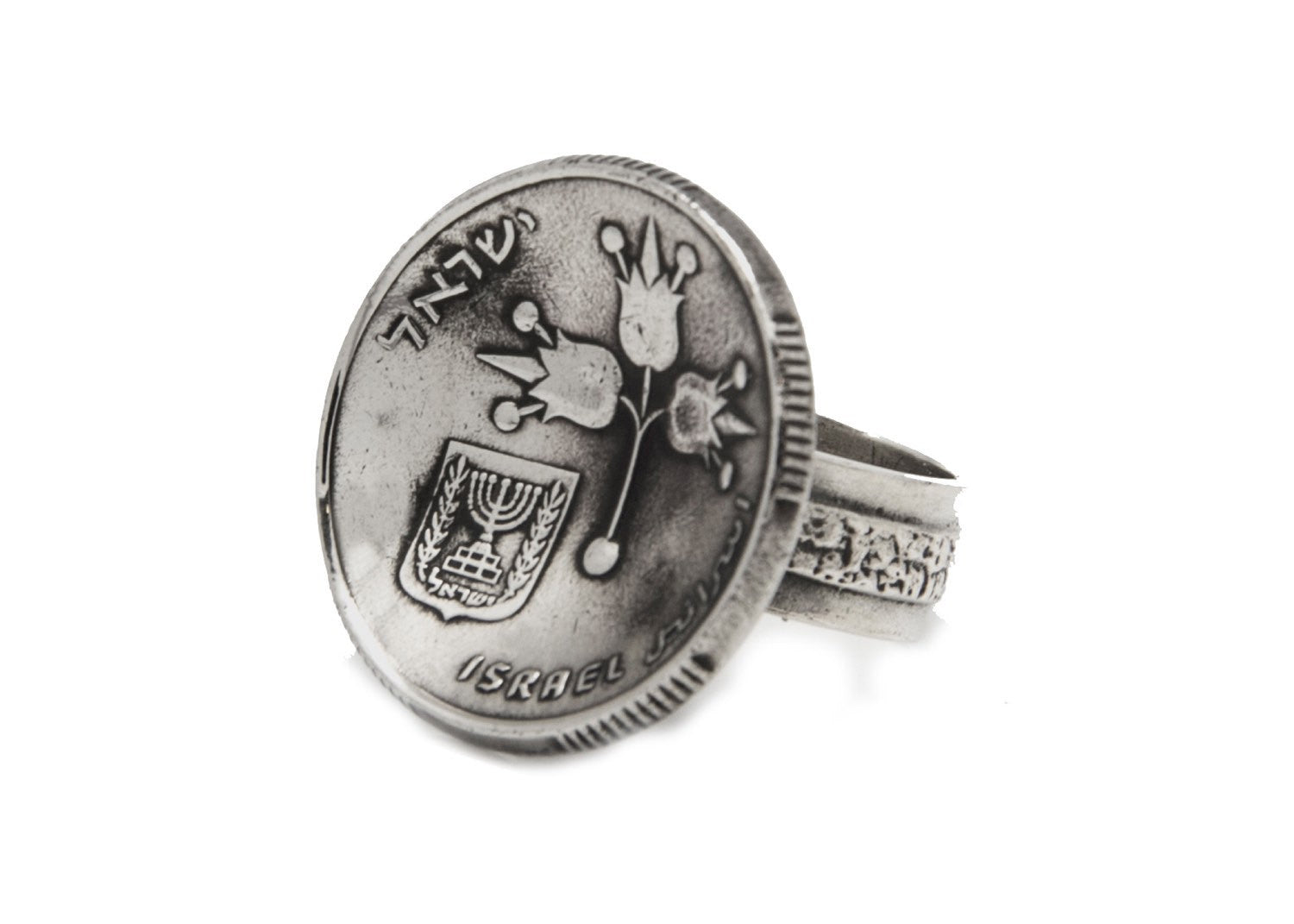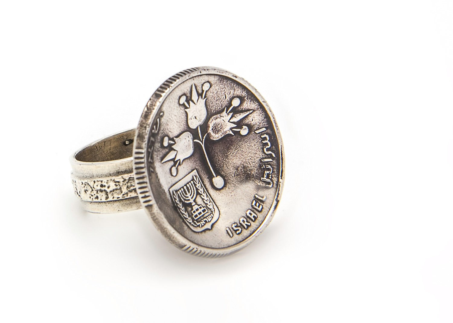 Israeli Lira 1 Pound Old Collector's Coin Ring - Silver Coin of Israel Ring