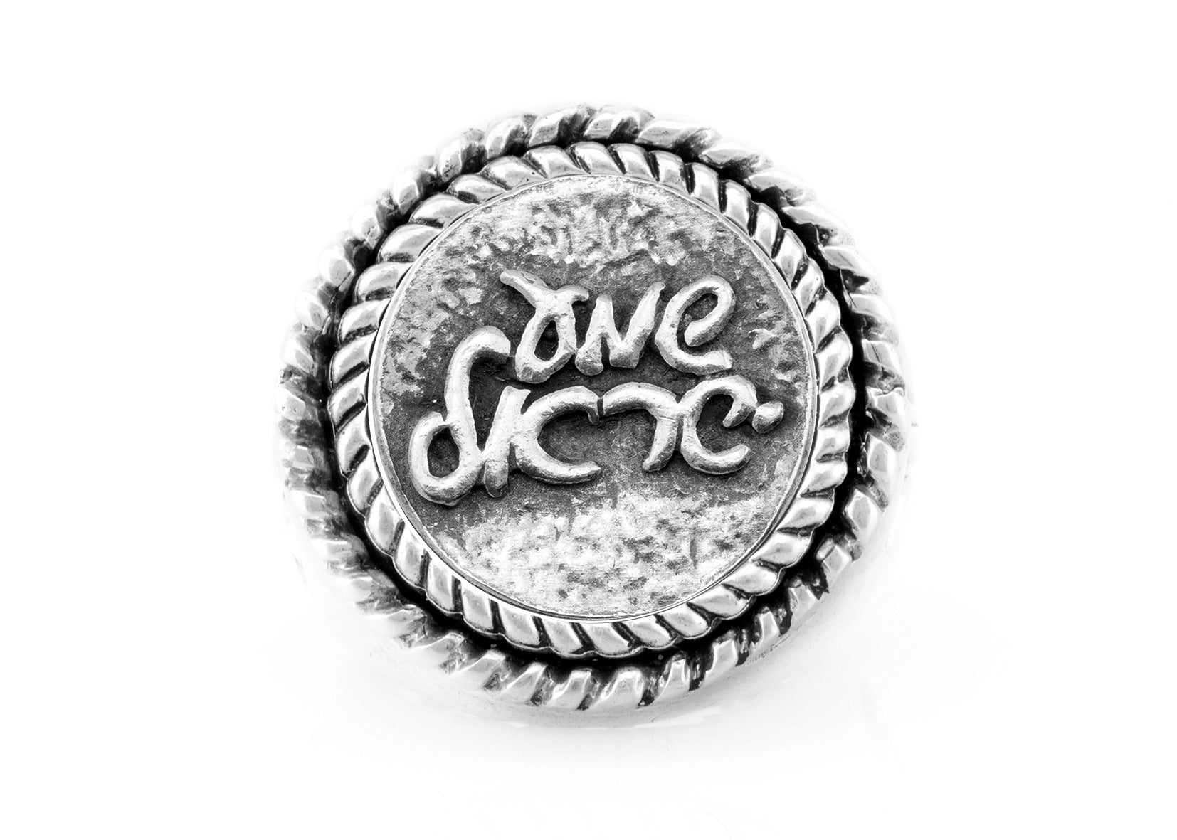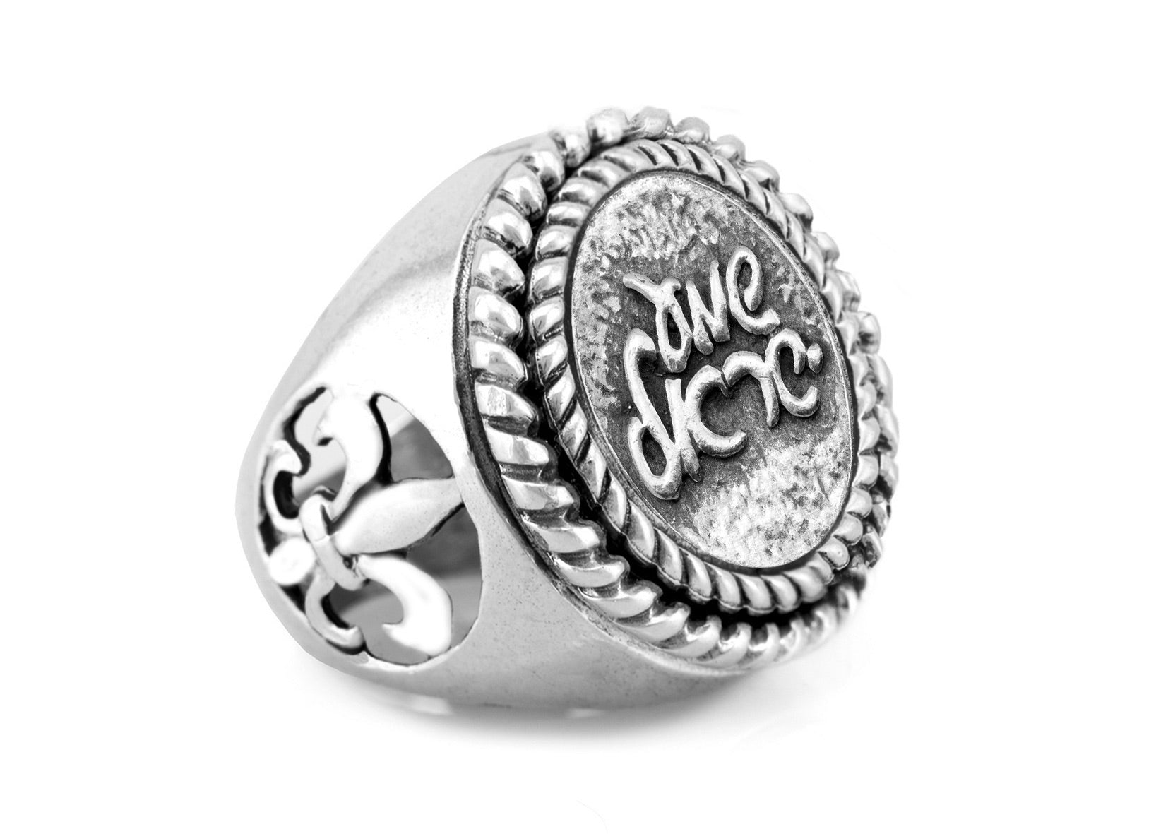 An amazing coin ring with the Shema Yisrael medallion on fleur de lis ring