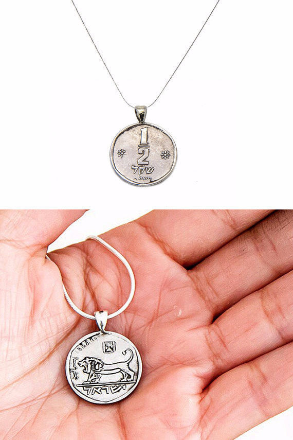 Israeli Half (1/2) Sheqel Coin Pendant Necklace