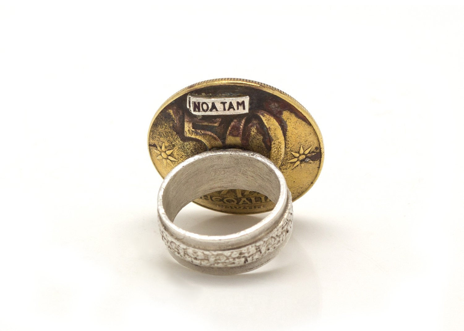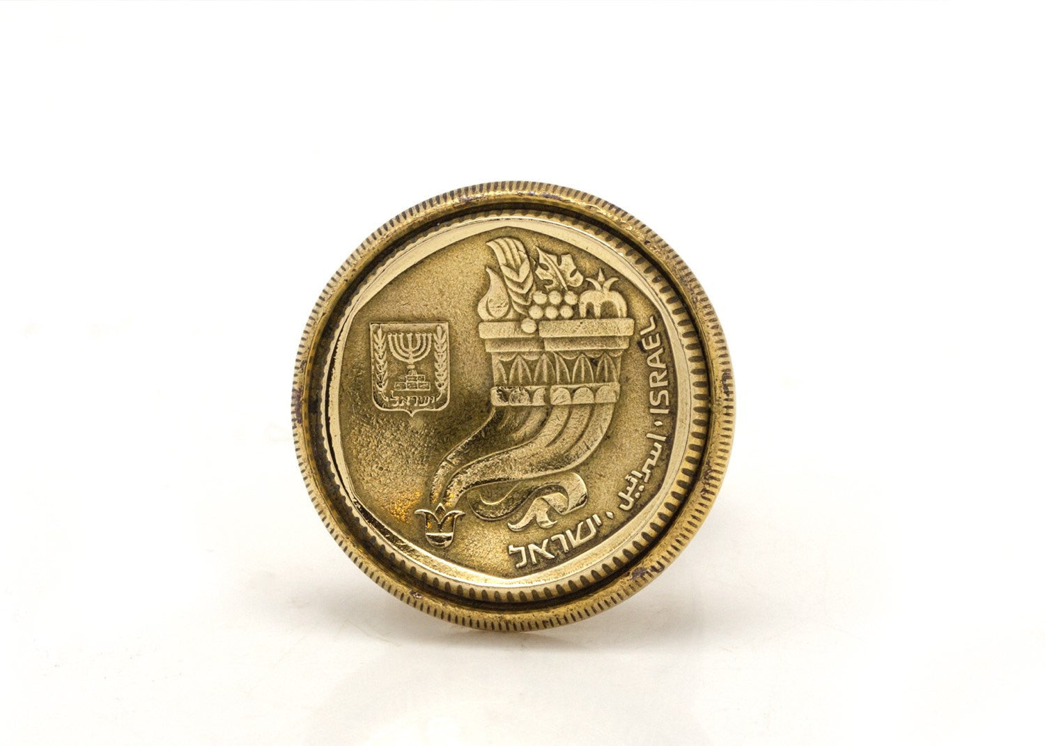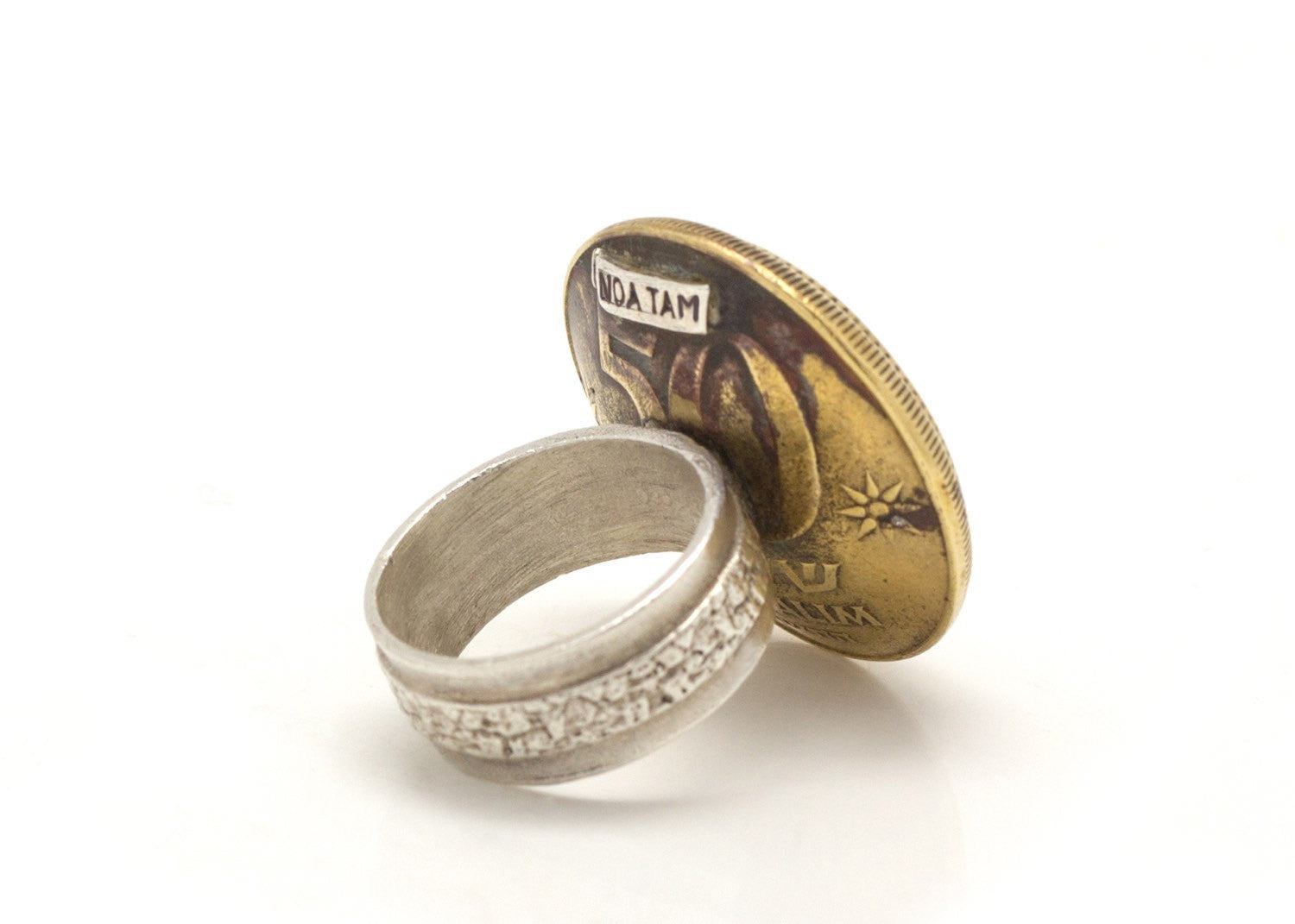 925 sterling silver ring with 2 Israeli old coins 5 Sheqel and 50 Sheqel