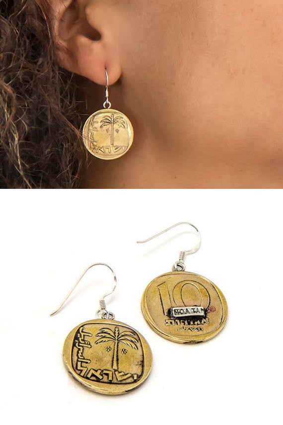 Coin Earring For Women, Old Coin Dangle Earrings With The 10 Agorot Coin of Israel, Coin Drop Earrings, Boho Eariings, Vintage Earrings