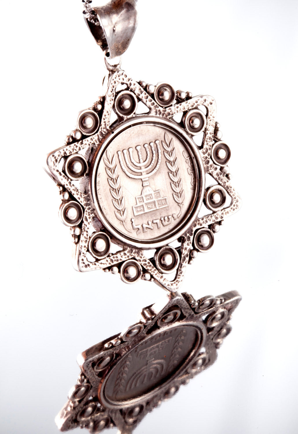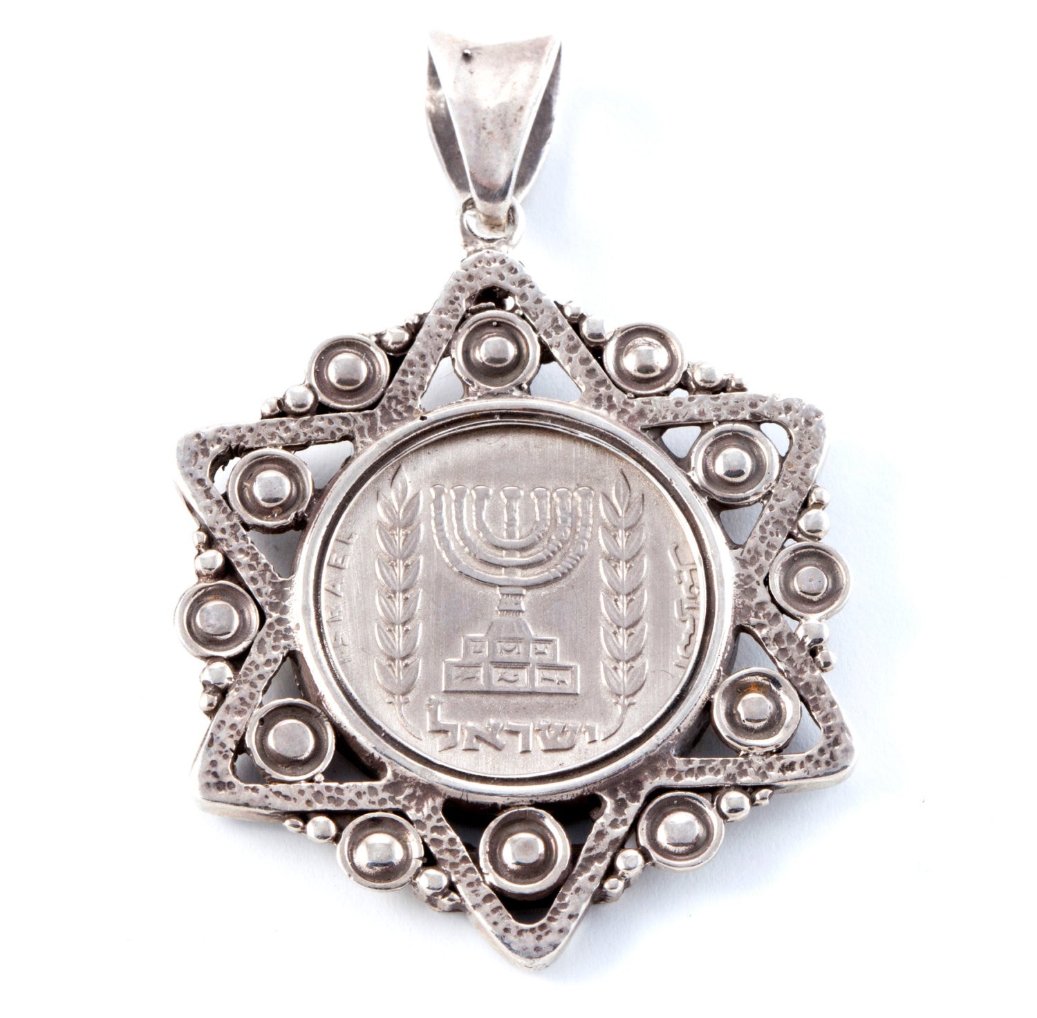 Israeli Old, Collector's Coin in a Star of David Pendant