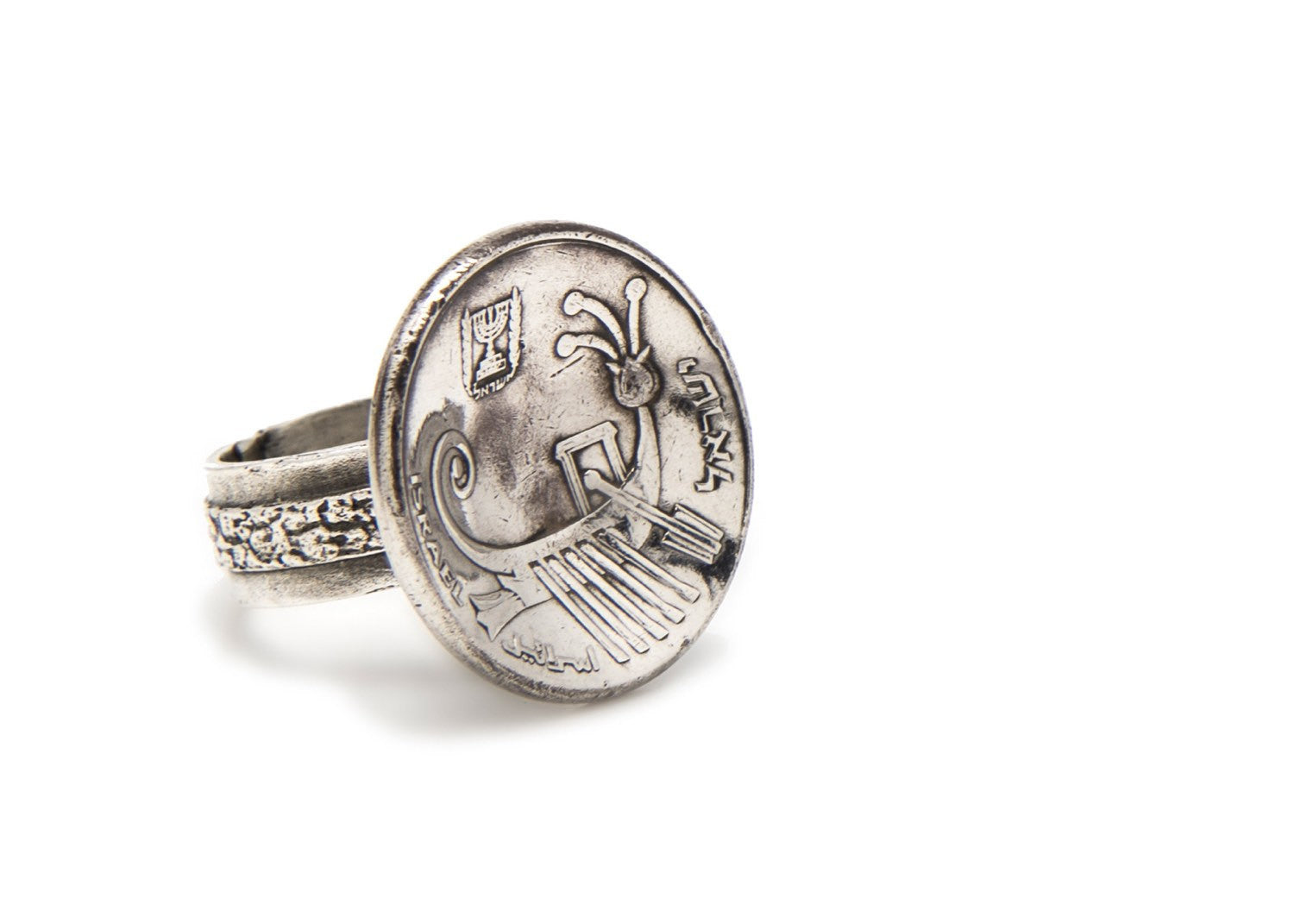 This amazing coin ring features the 10 Sheqel old, collector's coin of Israel.