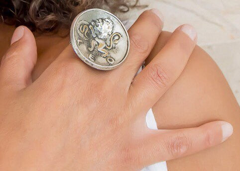 Channel the power of the Leo horoscope sign in the astrology chart of the zodiac with this beautiful Leo medallion ring.