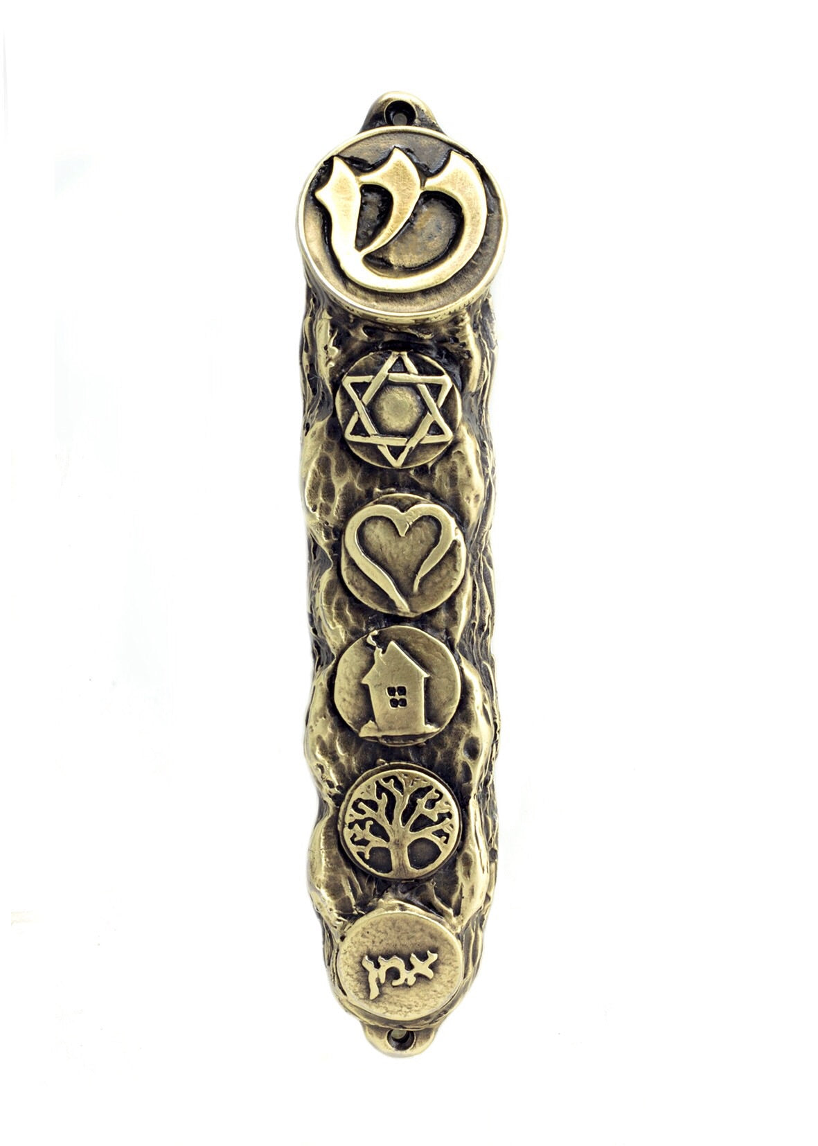 Mezuzah with Bright Symbols & Blessings, Bronze - Small (13cm)