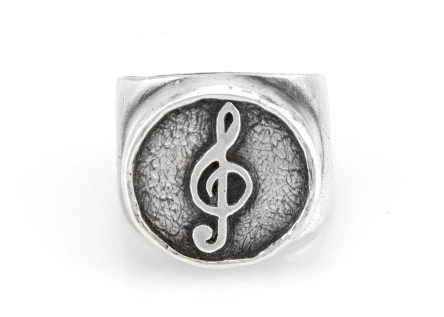 Treble Clef Musical Coin Medallion Ring - Sterling Silver