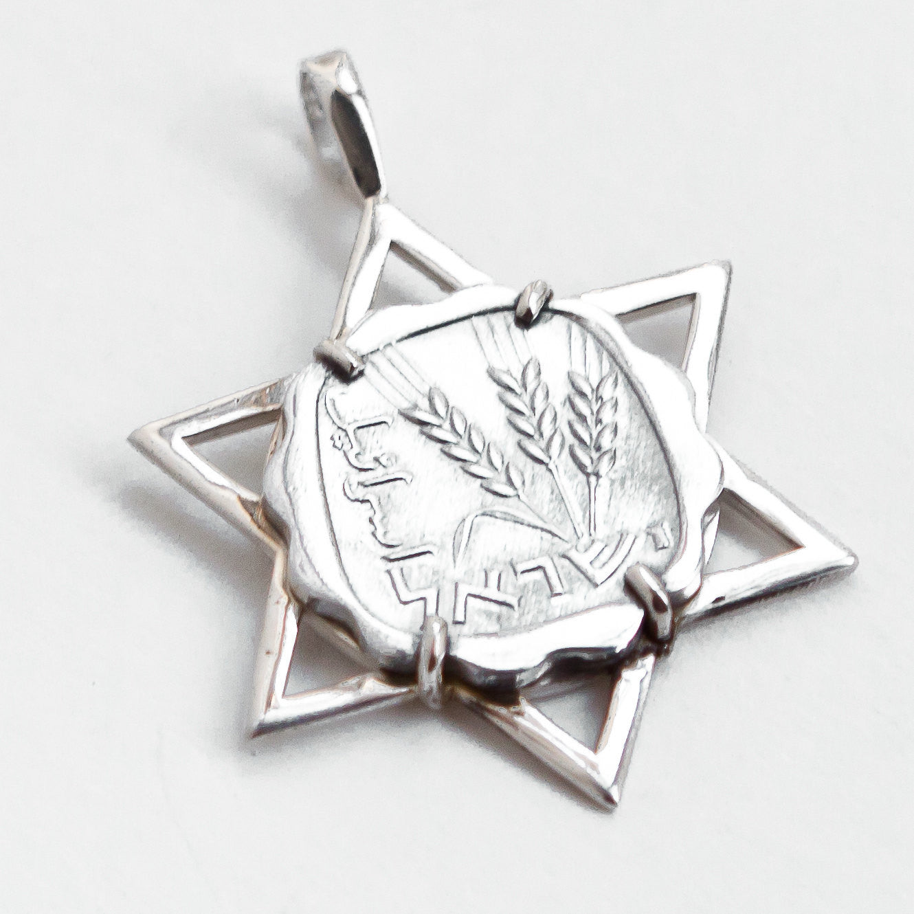 Israeli Agora Coin - Star Of David Coin, Magen David Chain, Israel Coin, Jewish Necklace, Coin Pendant, Israel Necklace, Israeli Currency
