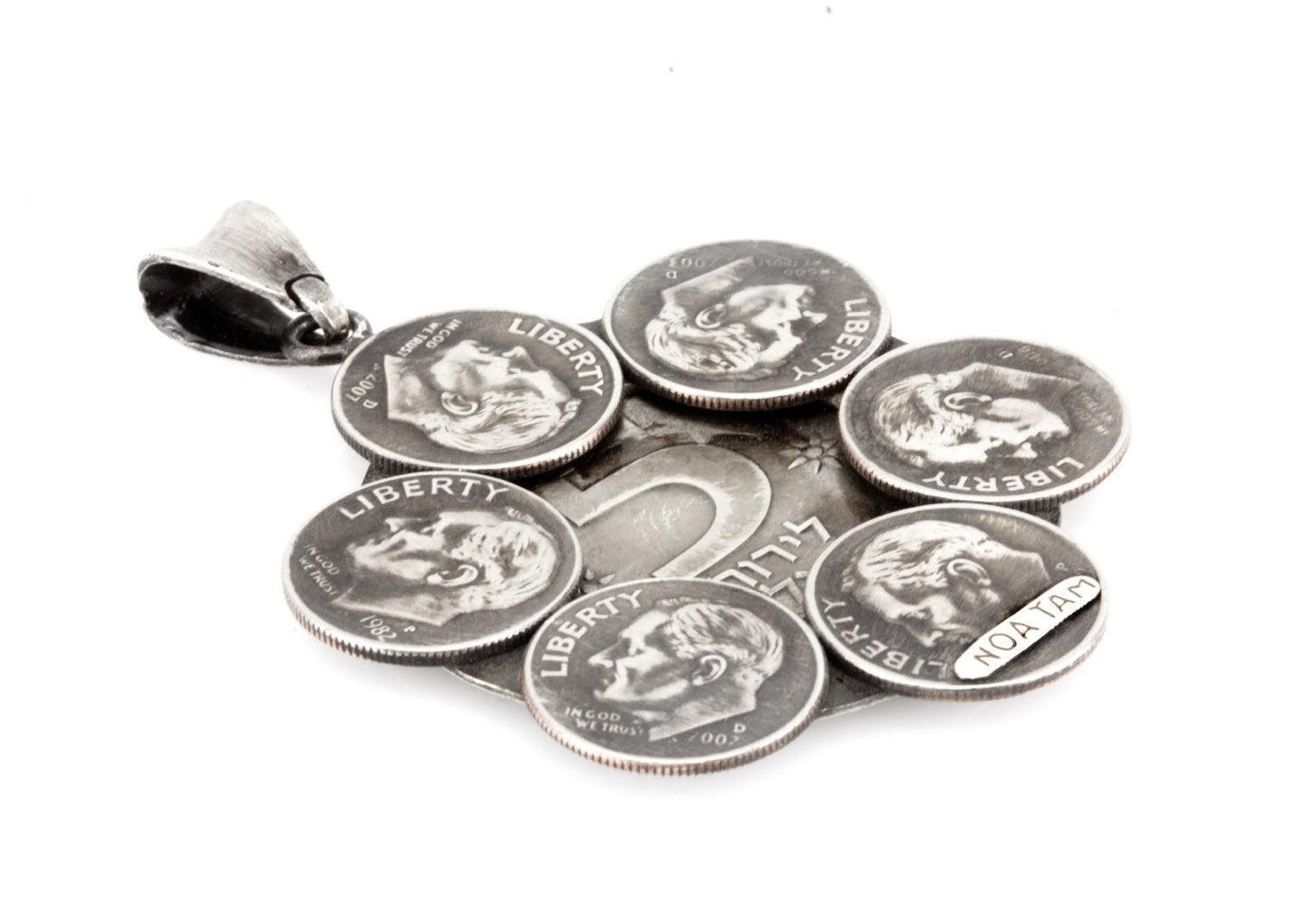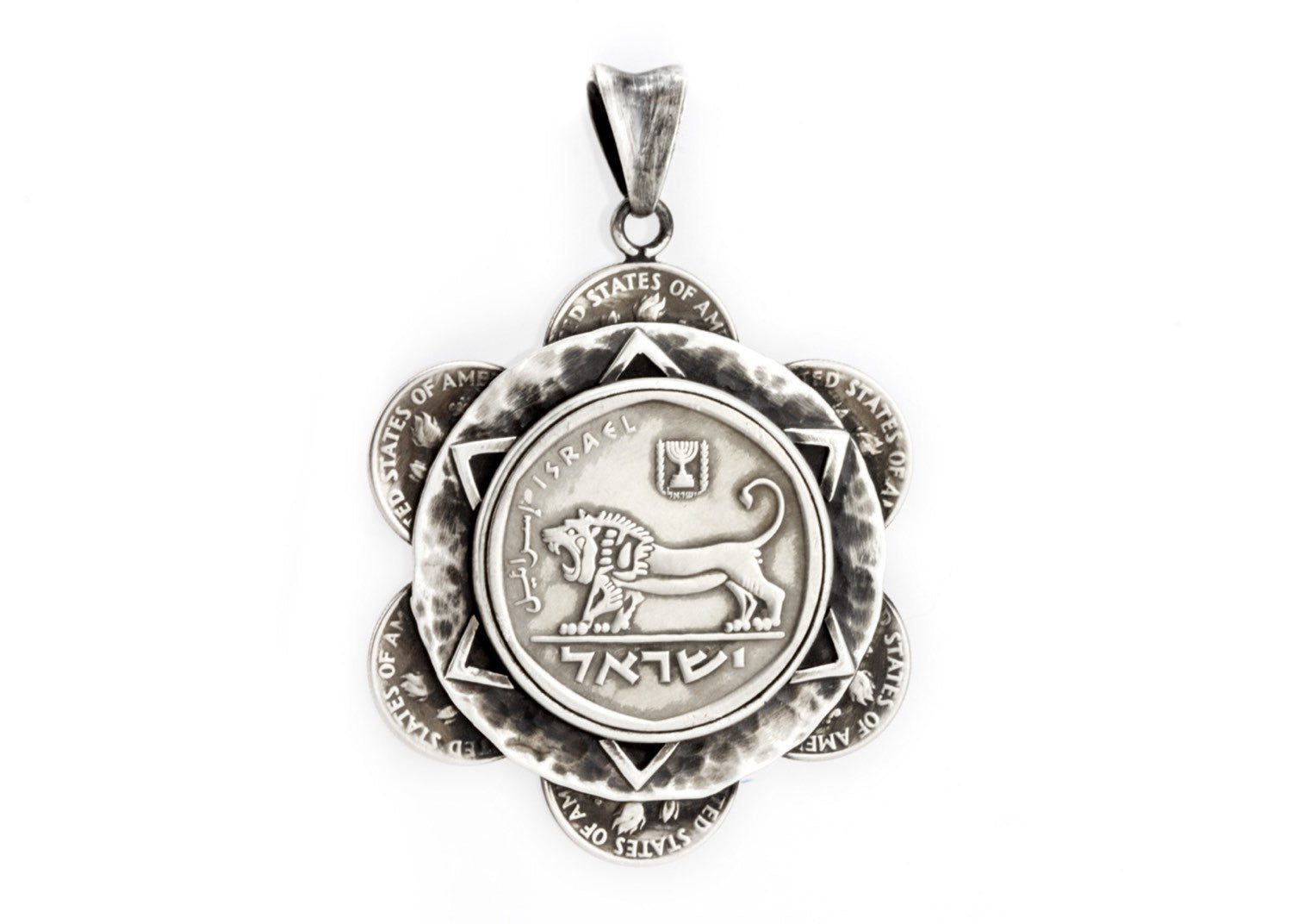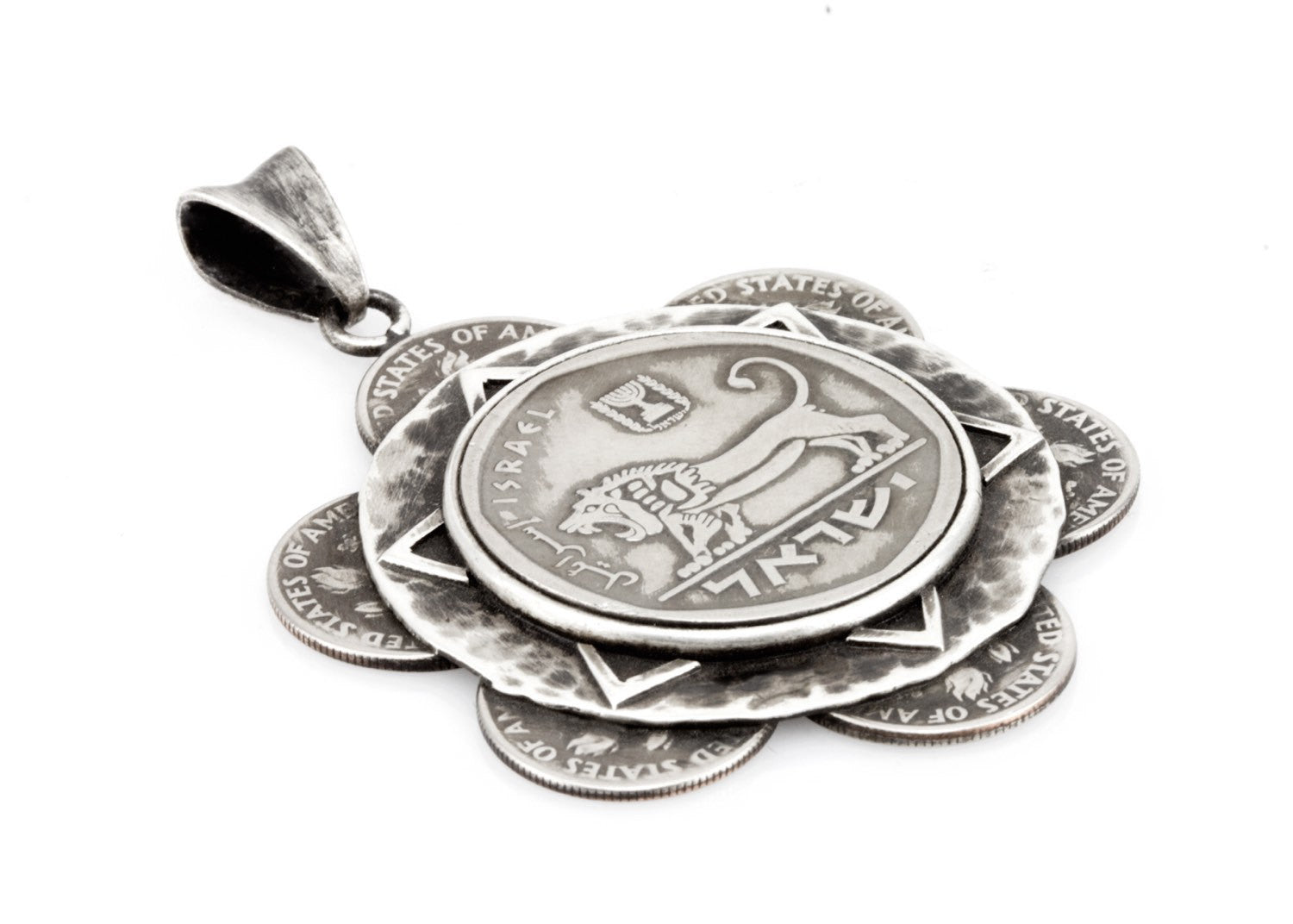 Sunflower Coin Necklace - US Dimes and Israeli 5 Liras Flower Design