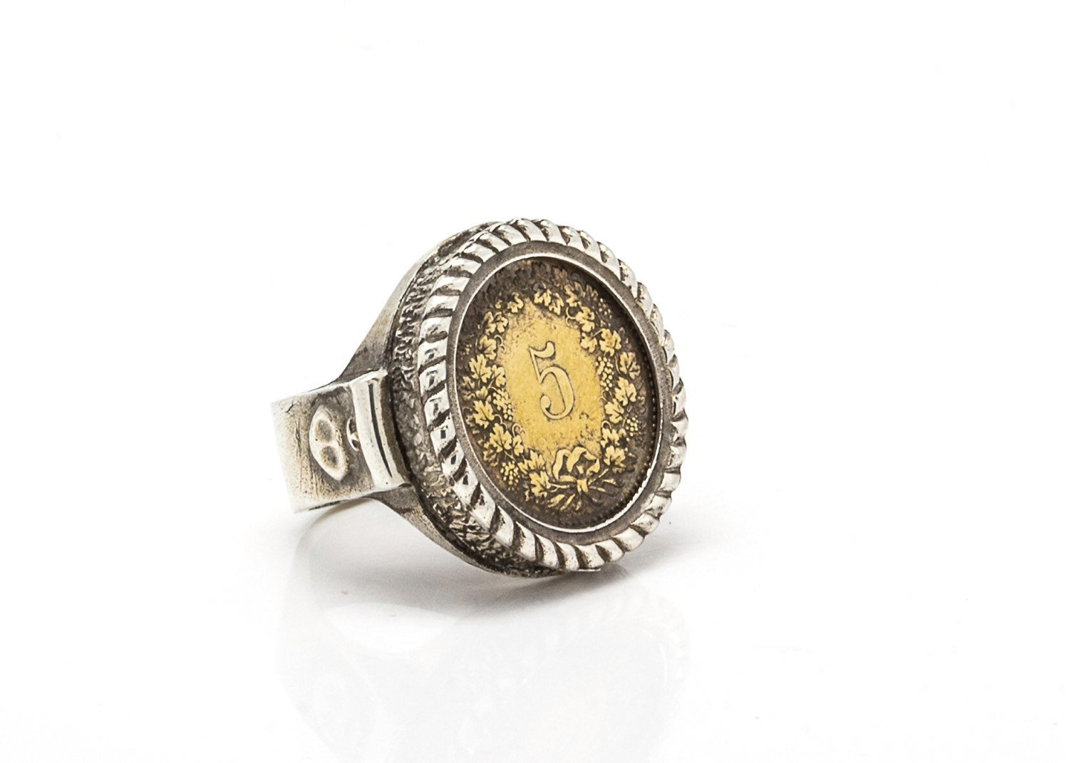 Swiss Coin Ring with the 5 Rappen Coin of Switzerland