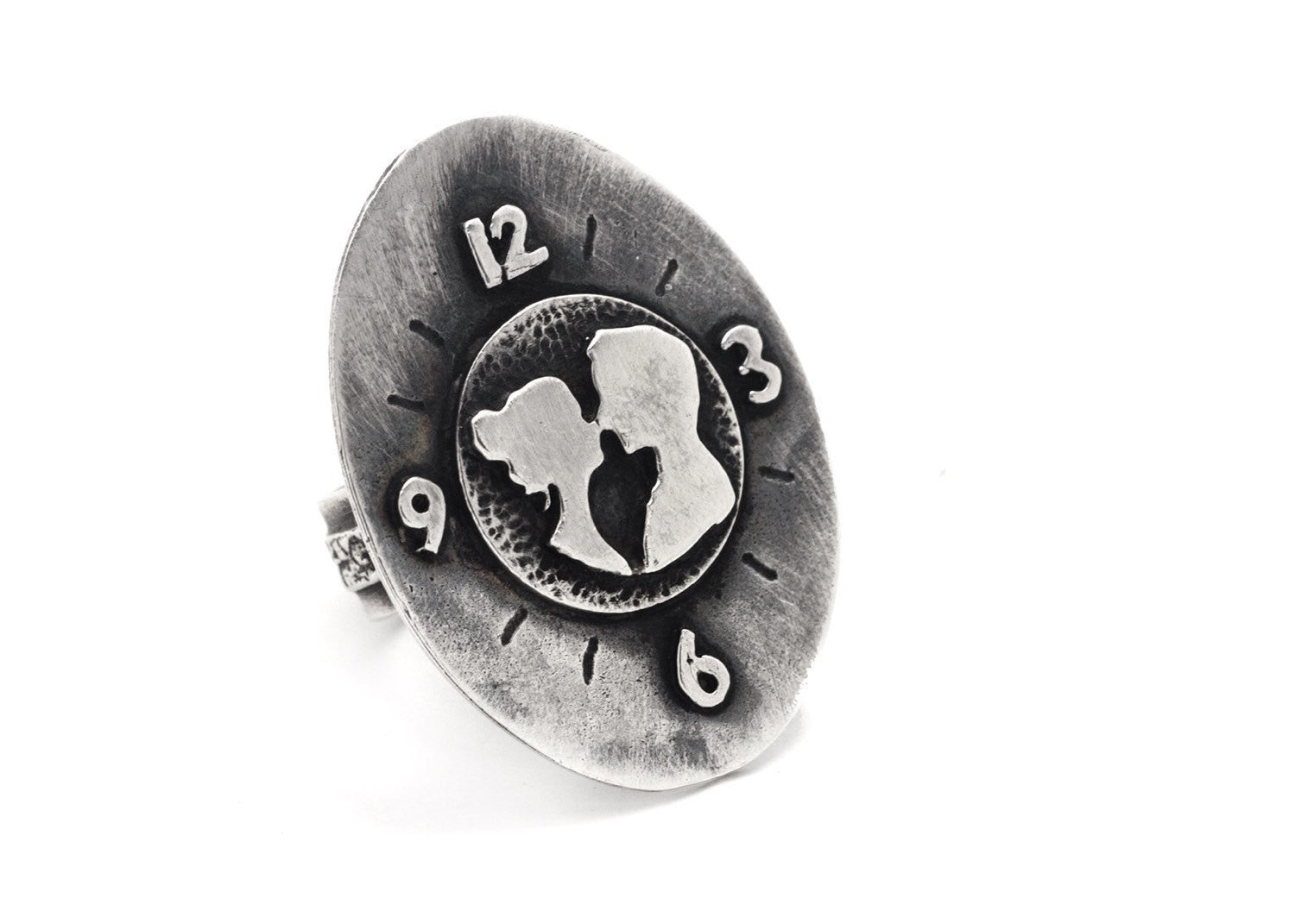 This piece is from the "Timeless" Collection. In this design, one leg stands still, as if trying to stop the clock, but the other leg is in motion, reminding us that time ticks on! Everyone tries to stop time in different ways, sometimes by capturing moments with cameras, other times by looking for the fountain of youth. Life doesn’t have a pause button, so the best we can do is make the most of this gift called the present!