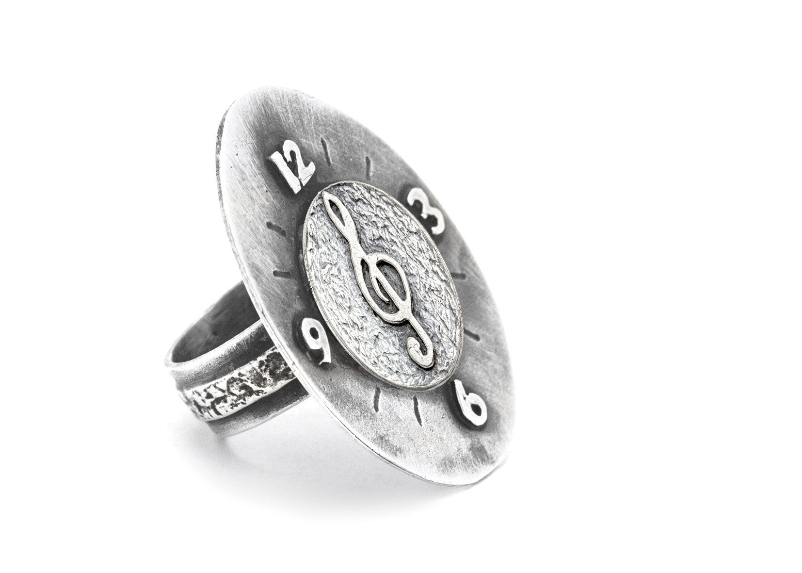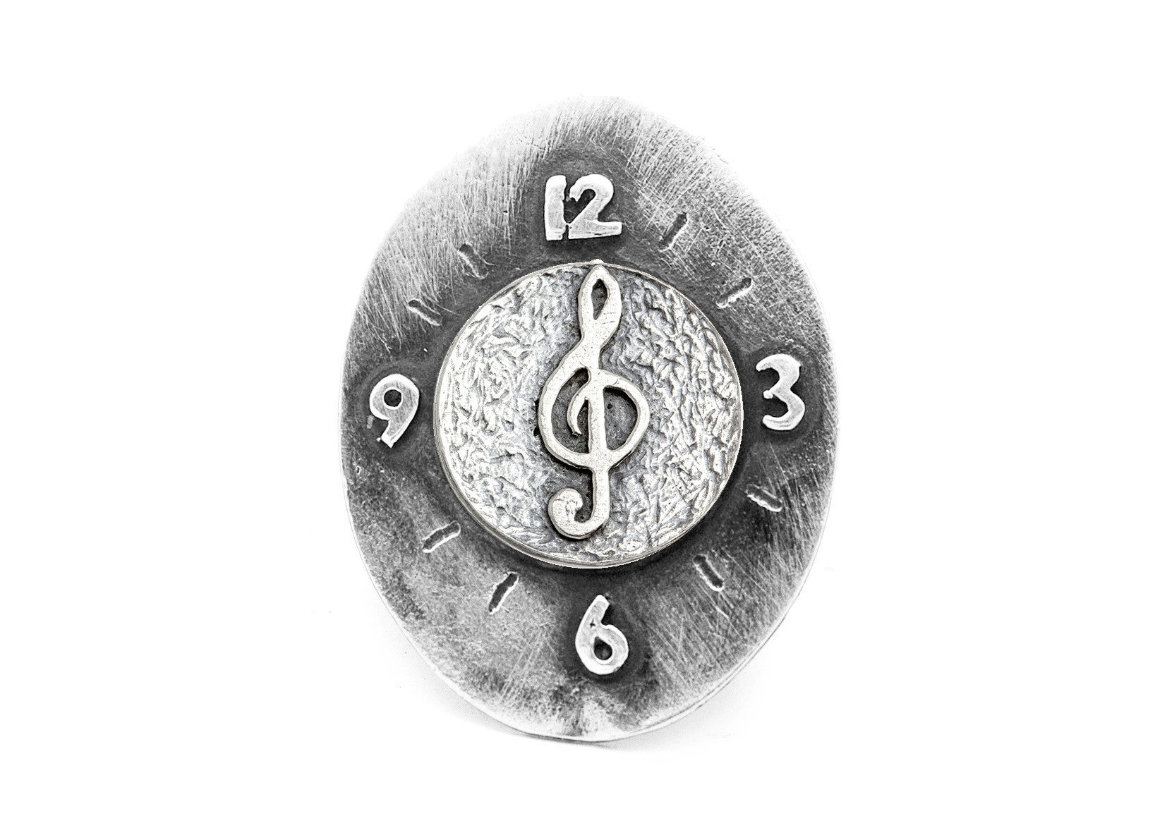 This piece is from the "Timeless" Collection. In this design, one leg stands still, as if trying to stop the clock, but the other leg is in motion, reminding us that time ticks on! Everyone tries to stop time in different ways, sometimes by capturing moments with cameras, other times by looking for the fountain of youth. Life doesn’t have a pause button, so the best we can do is make the most of this gift called the present!