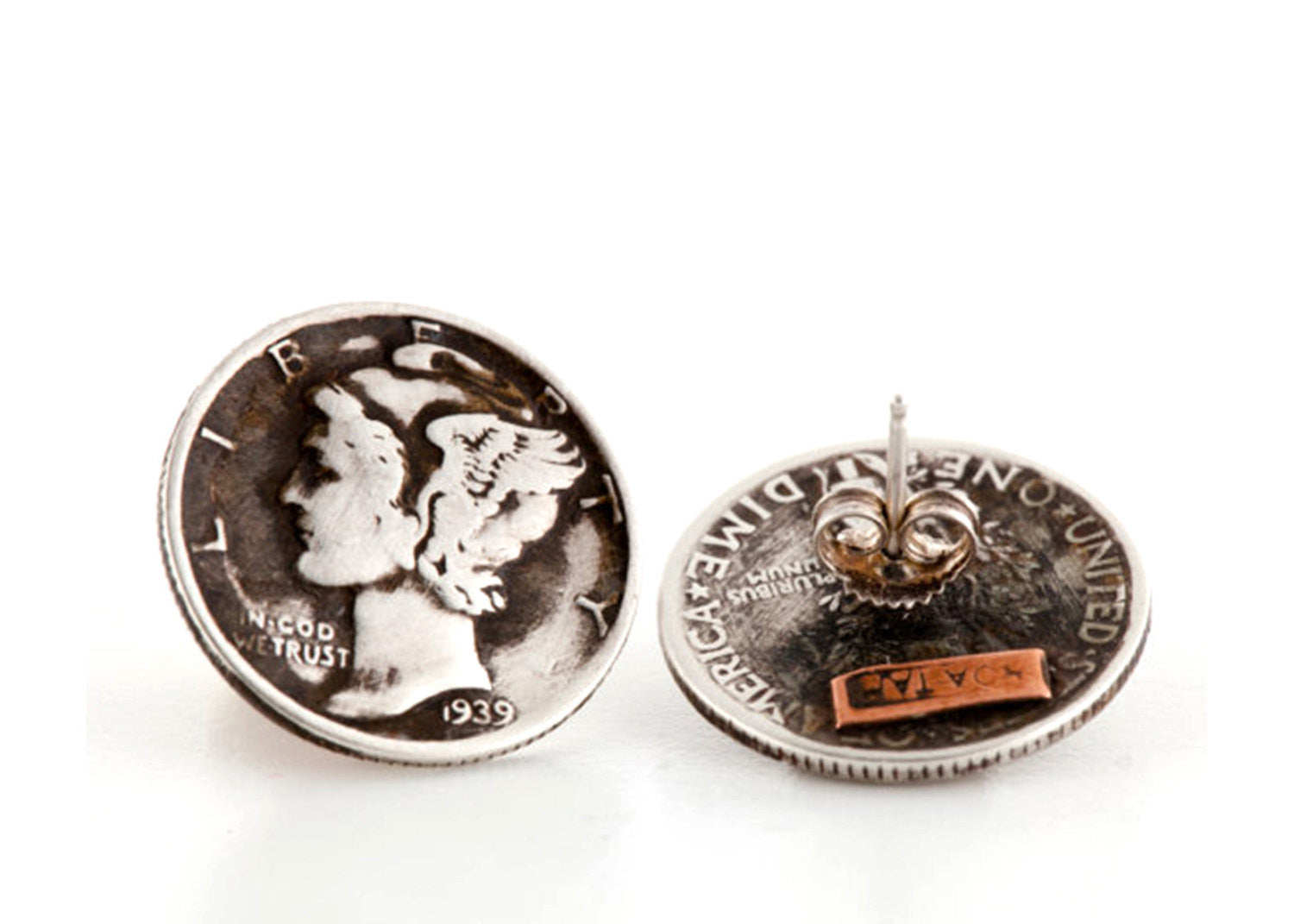 These "Winged Liberty Head Earrings" features sterling silver posts and a simple and beautiful design that compliments the the liberty dime, 10 cent coin of the United States of America.