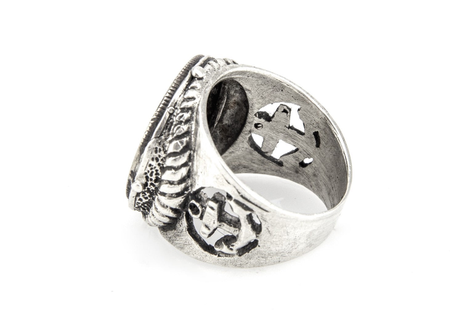 The side of the ring features a ship anchor. When we tap into this symbol we connect to our roots and build trust and stability.